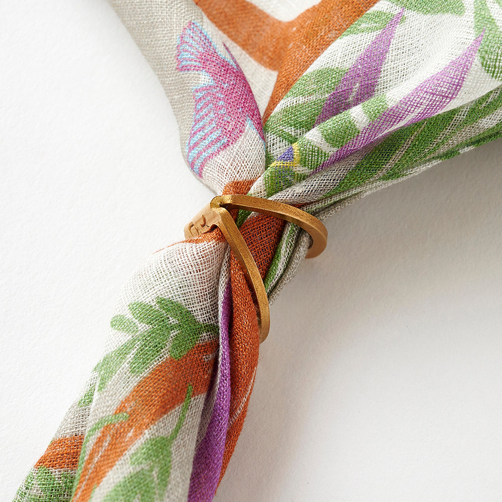 オリジナルの真鍮製バタフライリング付きなので、巻き方に悩んでしまう方でもカンタンにアレンジが可能です。(*スカーフリングの使い方のリーフレットも付いてきます。)