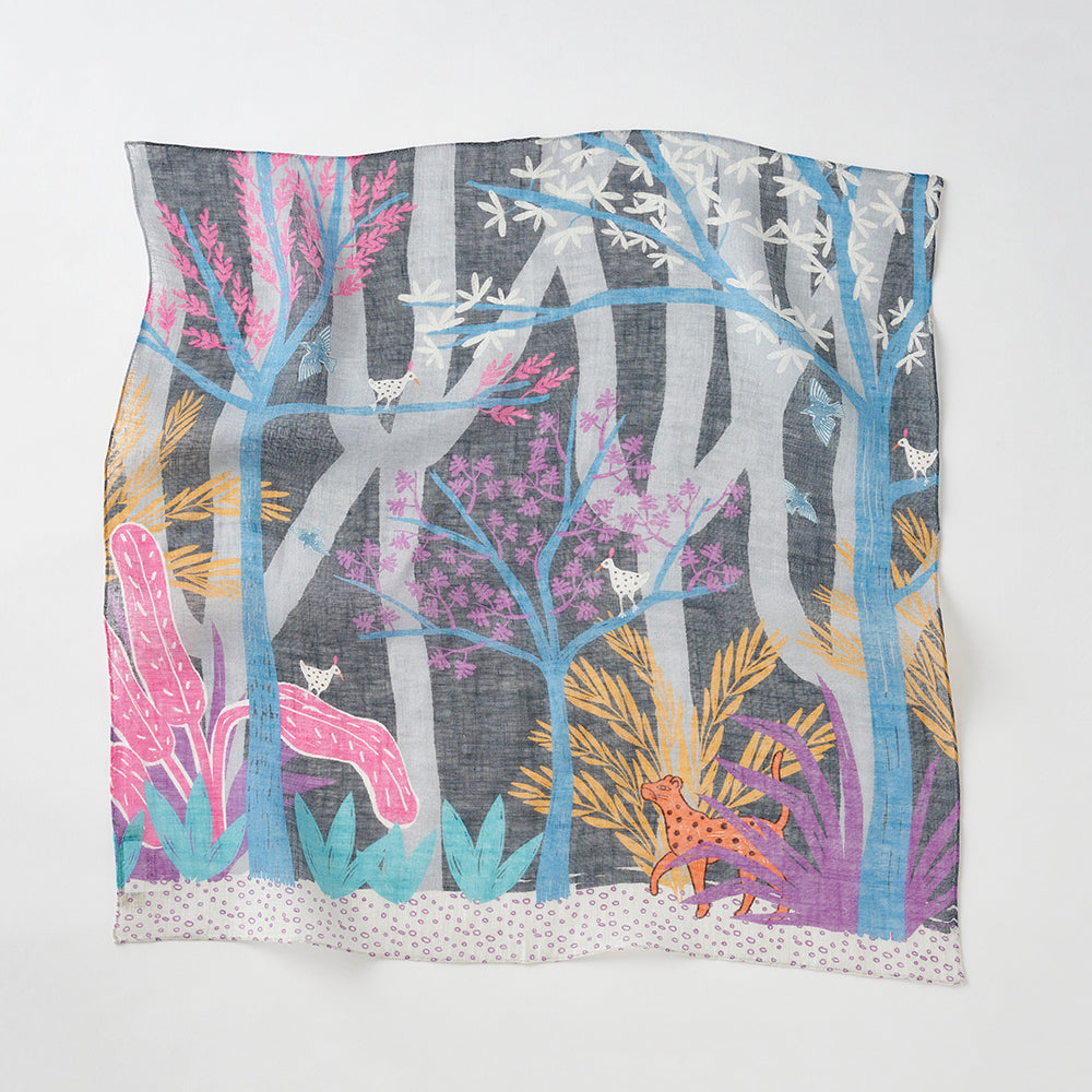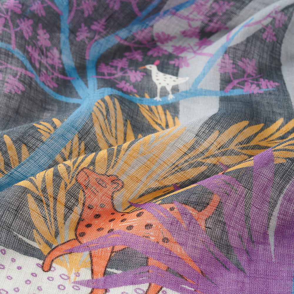 Just as dawn breaks in 'Monsoon Forest' there is a flurry of activity. The forest is a thriving mixture of animals and plants, all brightly coloured and playful. The art style gives the design a textured look with tropical leaves and exotic birds.