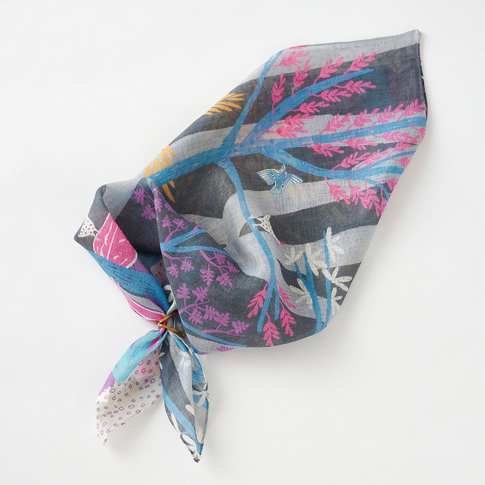 近江のリネン 'Monsoon Forest' midnight blue リング付きミニスカーフ