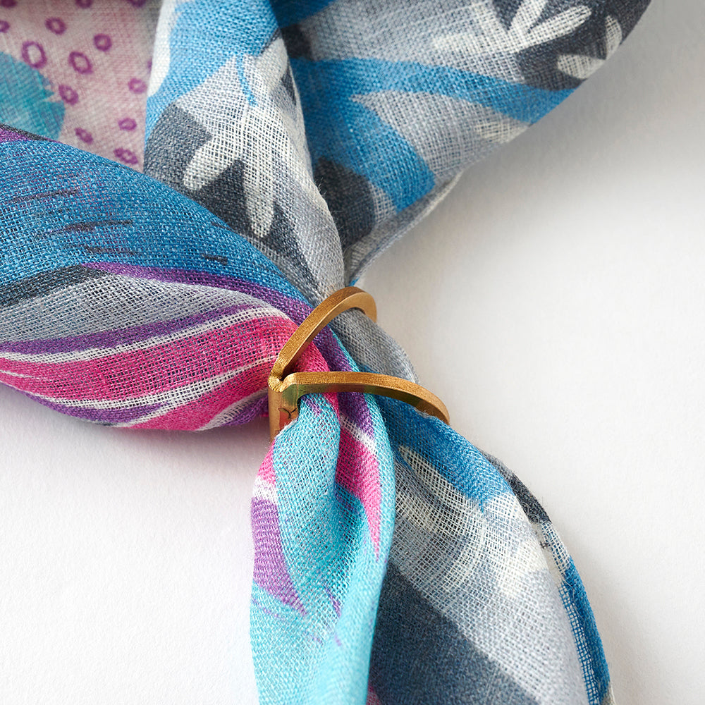 すぐにアレンジ可能な、スカーフリング付きのミニスカーフ。