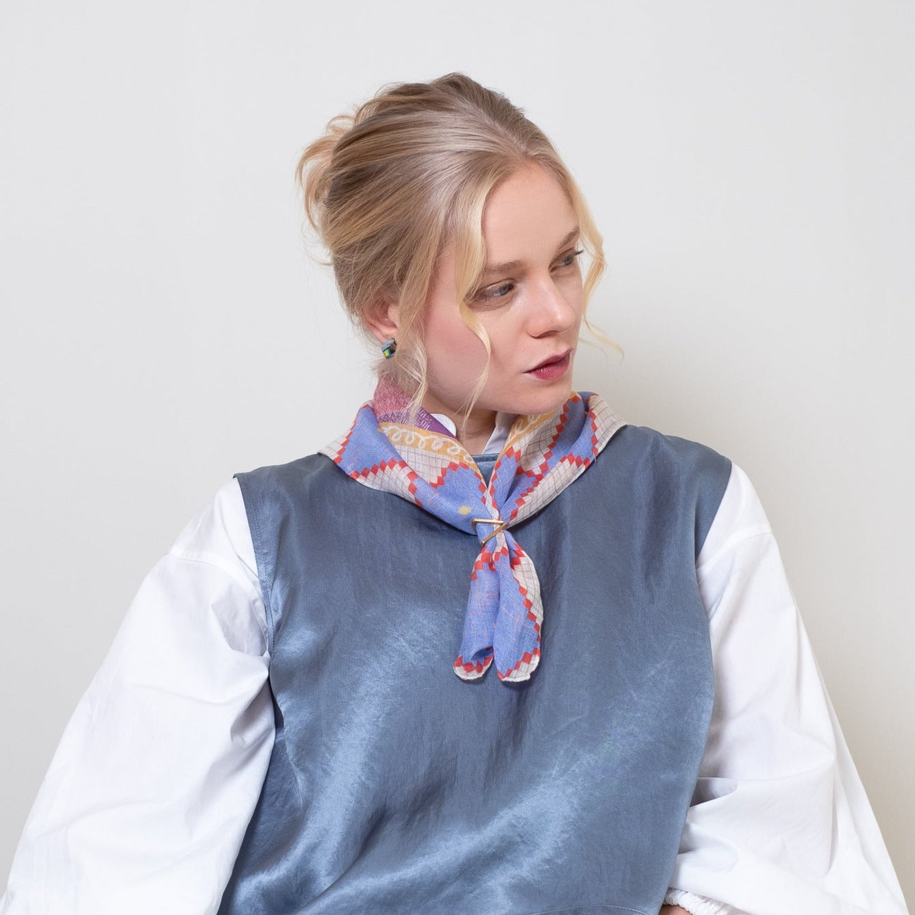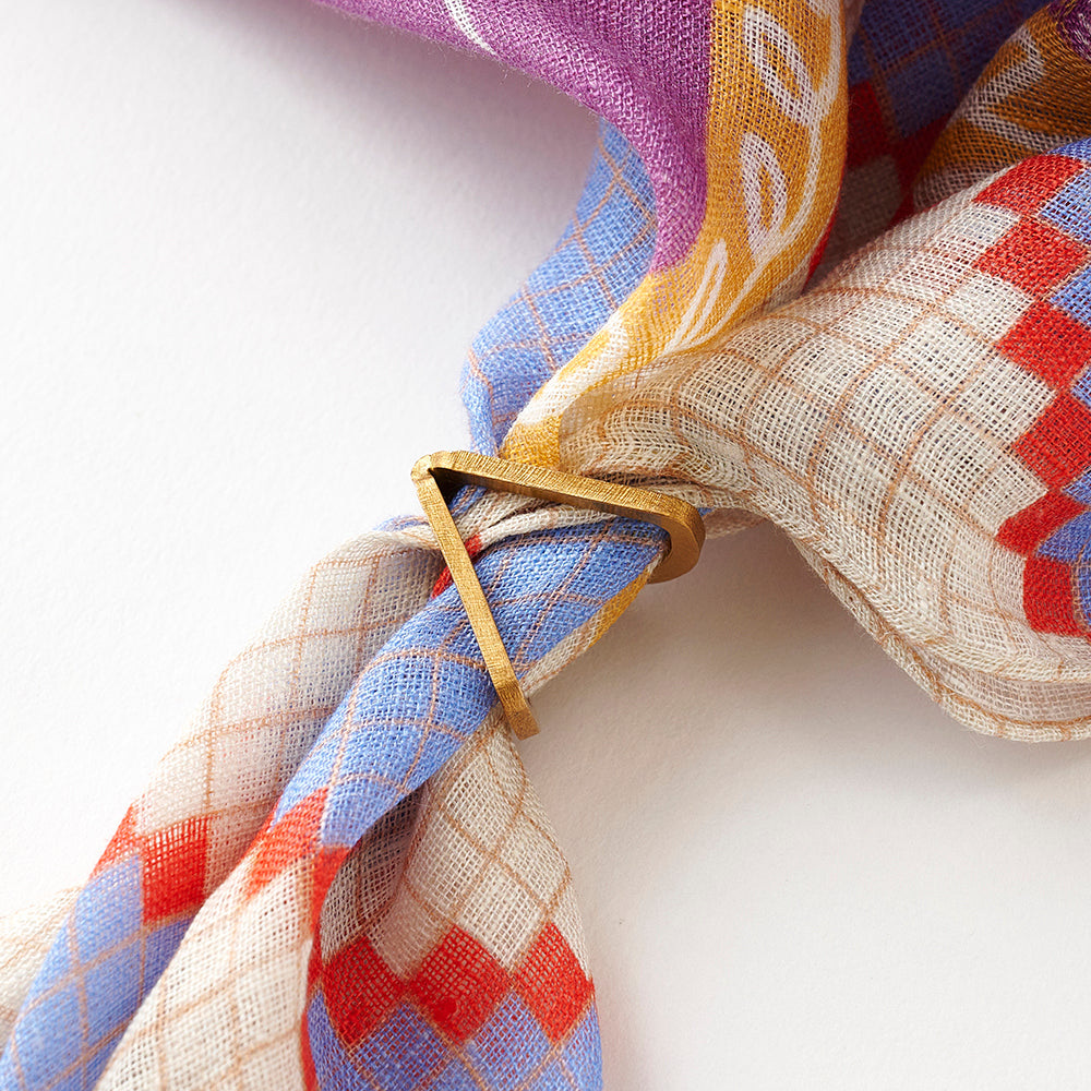 すぐにアレンジ可能な、スカーフリング付きのミニスカーフ。