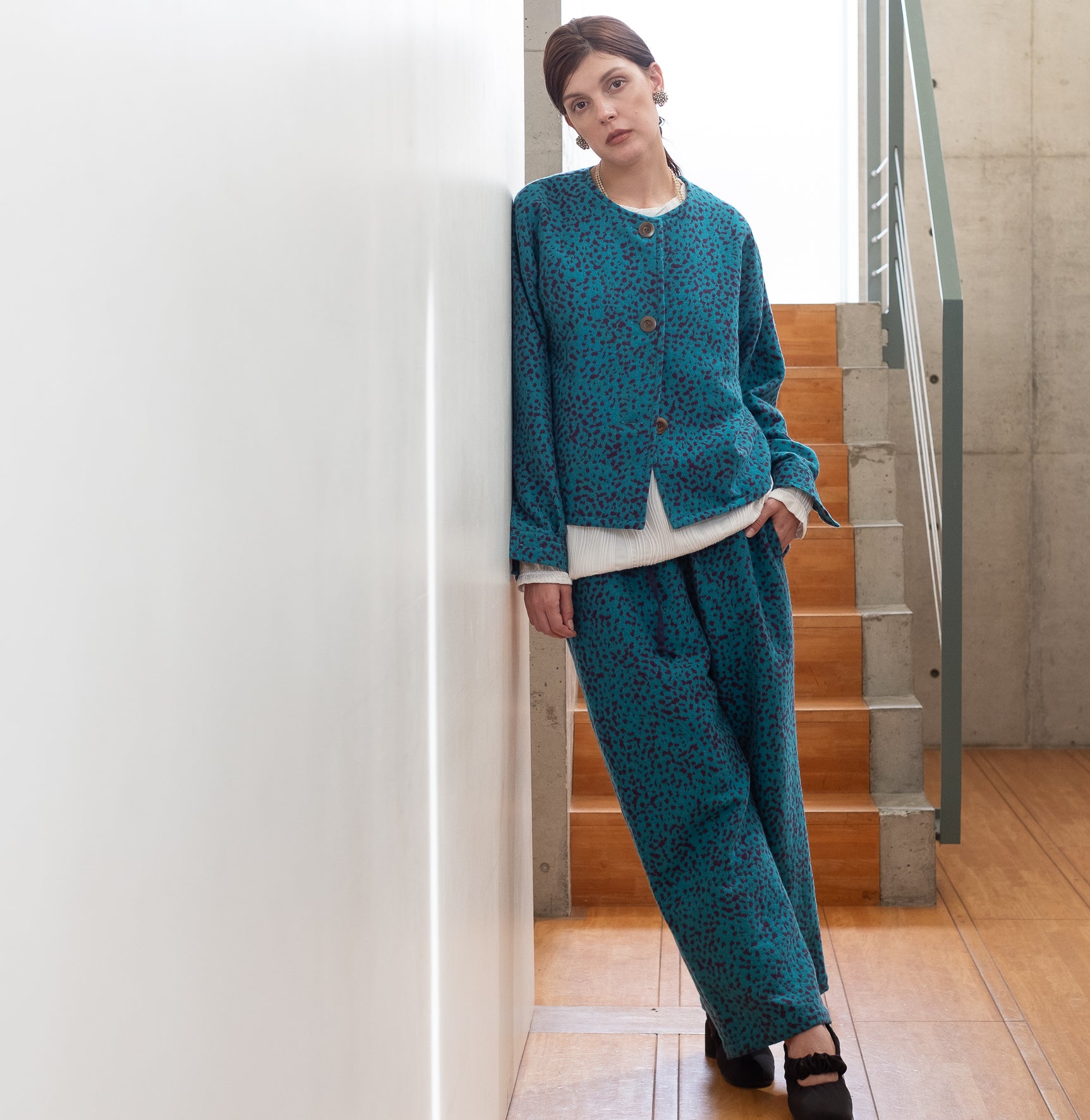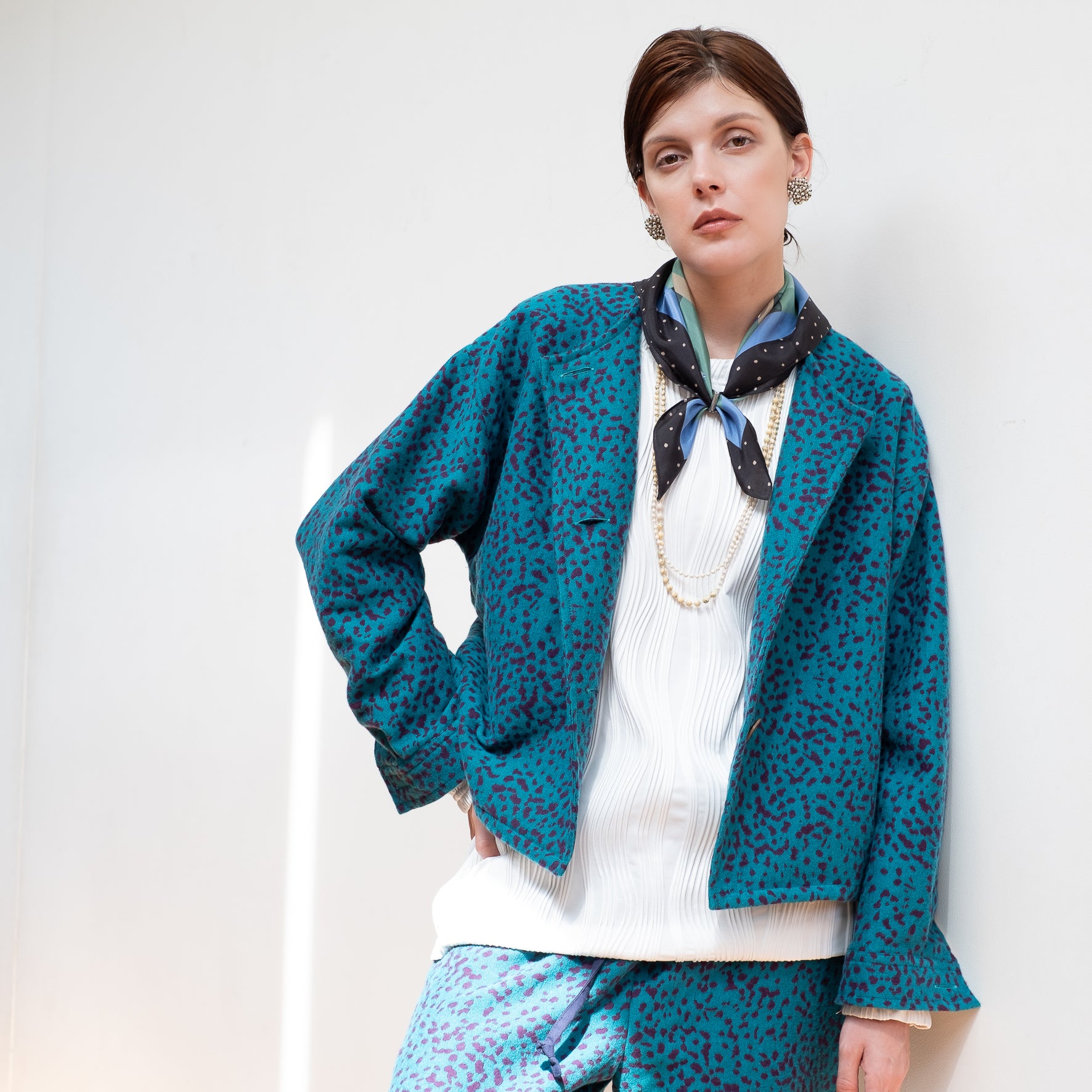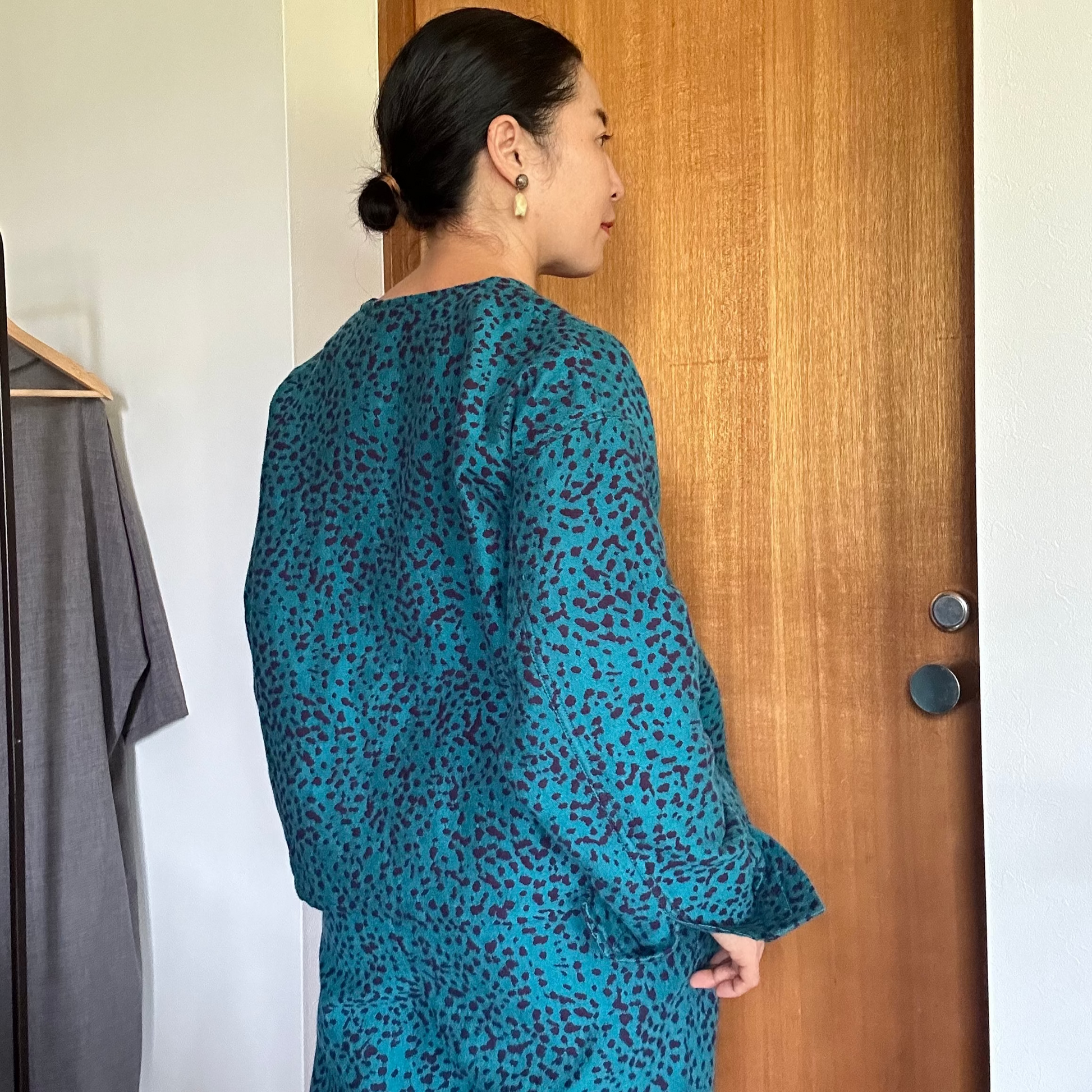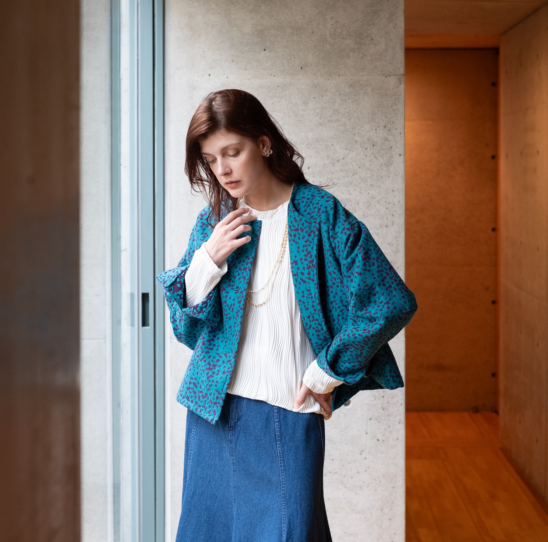 A relaxed, dropped-shoulder court dress made of banshu weave (jacquard).