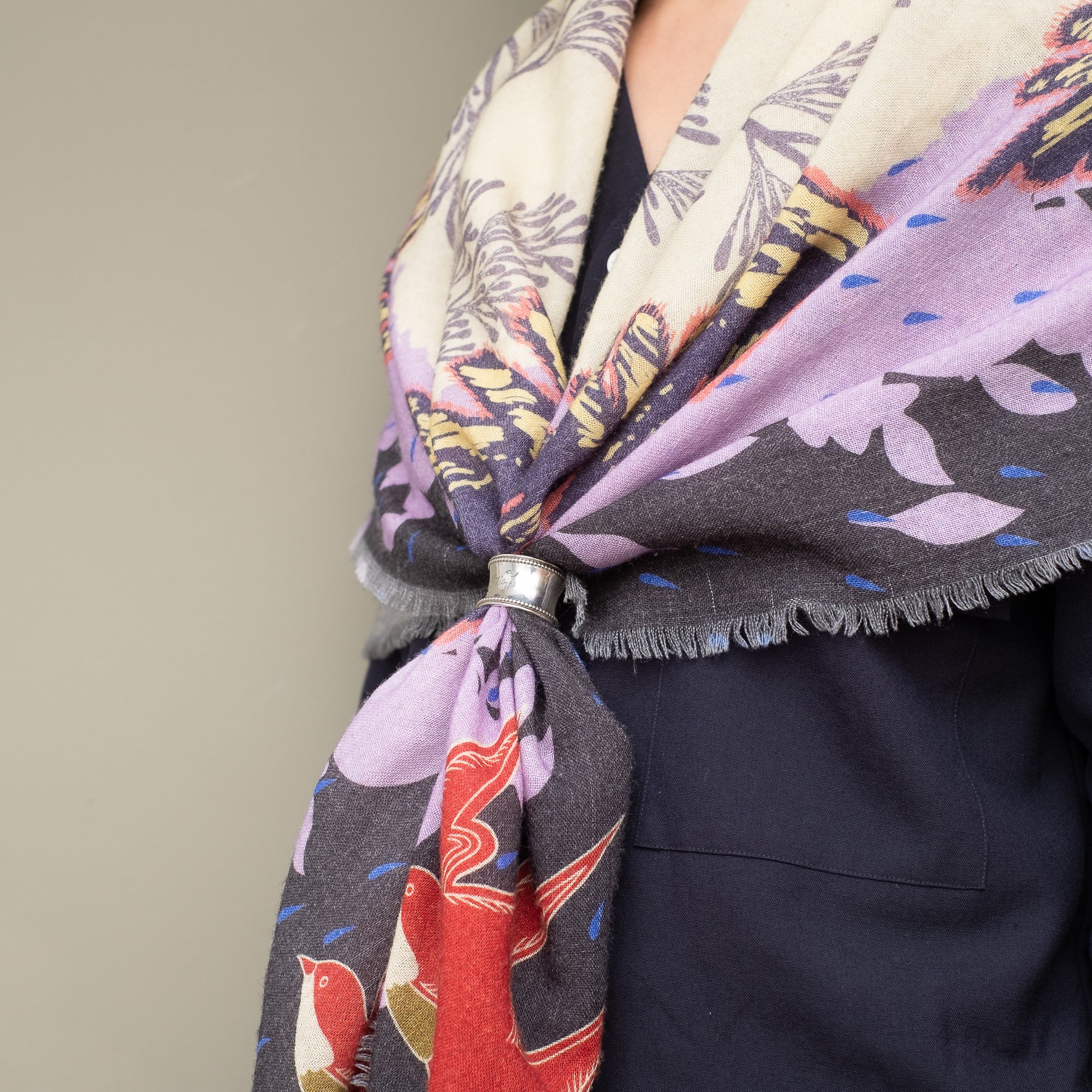 0x100cm〜120cmx120cmほどの中肉生地(ウールなど)のスカーフが良いかと思います。薄手生地の場合は、100cm~120cm角くらいがオススメ。