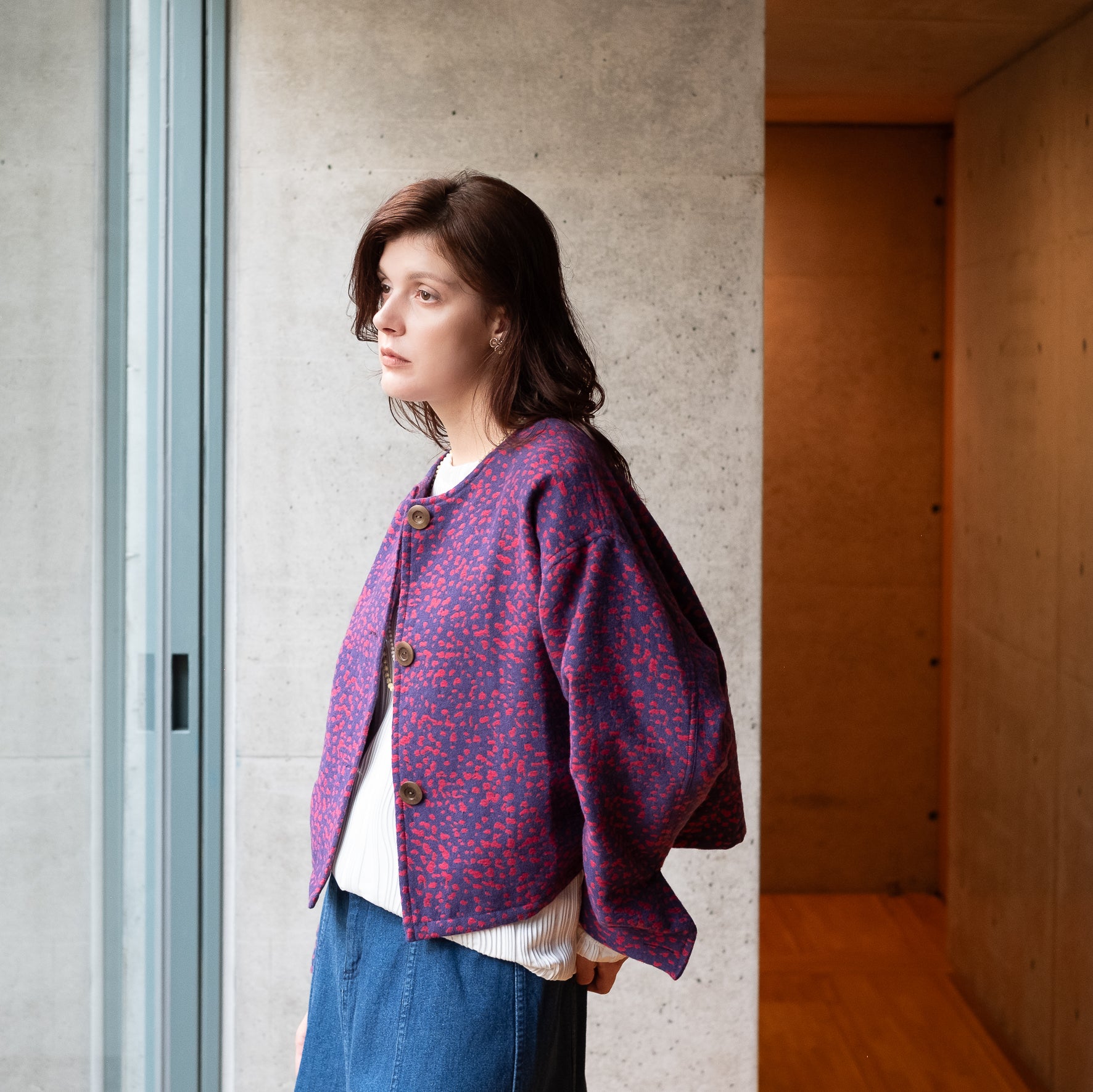 A relaxed, dropped-shoulder court dress made of banshu weave (jacquard).