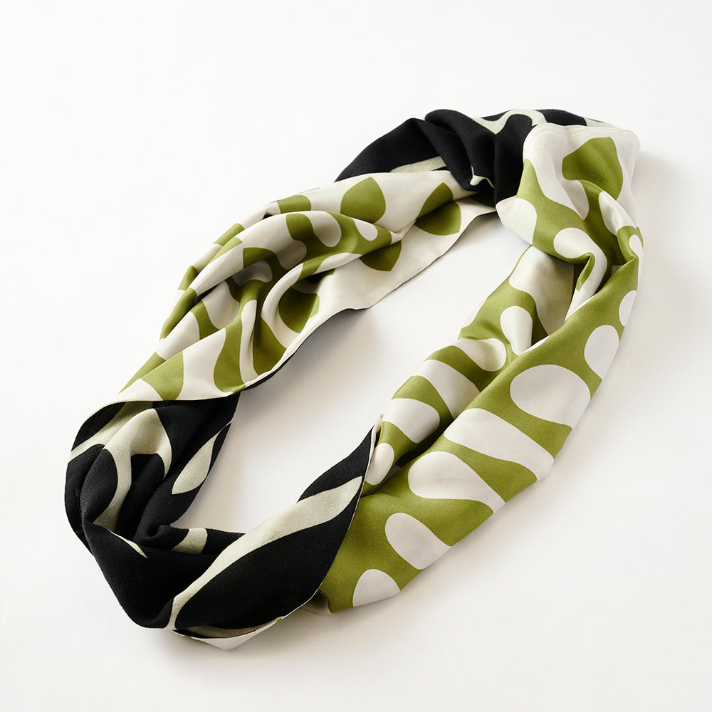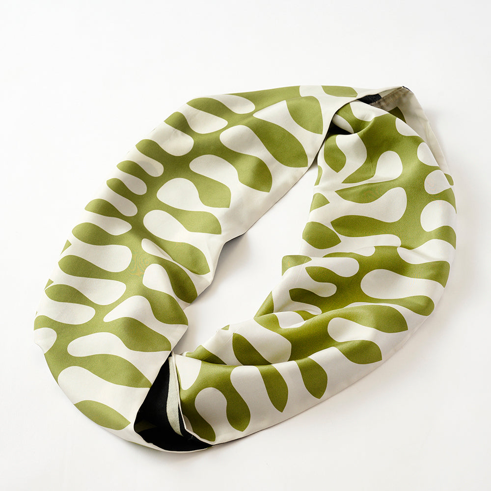 Silk & Merino Wool 'British Fern' green/black ループスカーフ