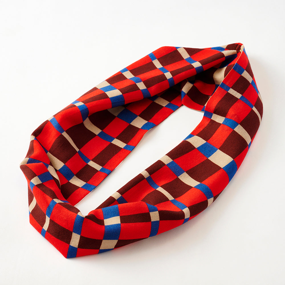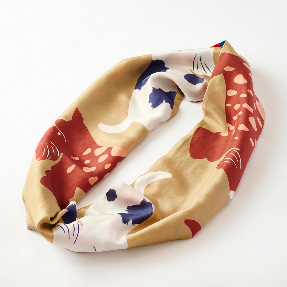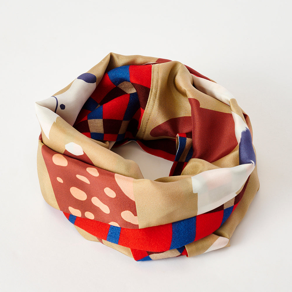 Silk & Merino Wool 'Scotties' camel/red ループスカーフ
