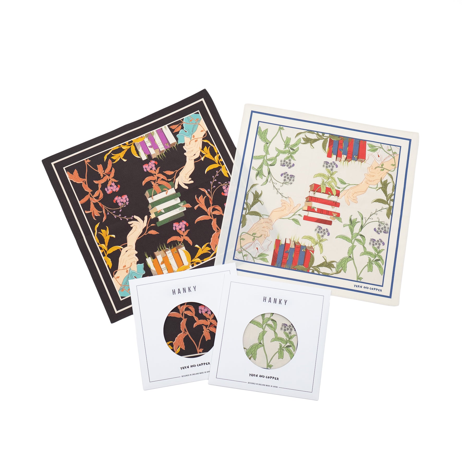 'A Shakespearen Dream', which is also the pattern of the scarf, has a beautiful art design of intertwined ivy, books, and hands.