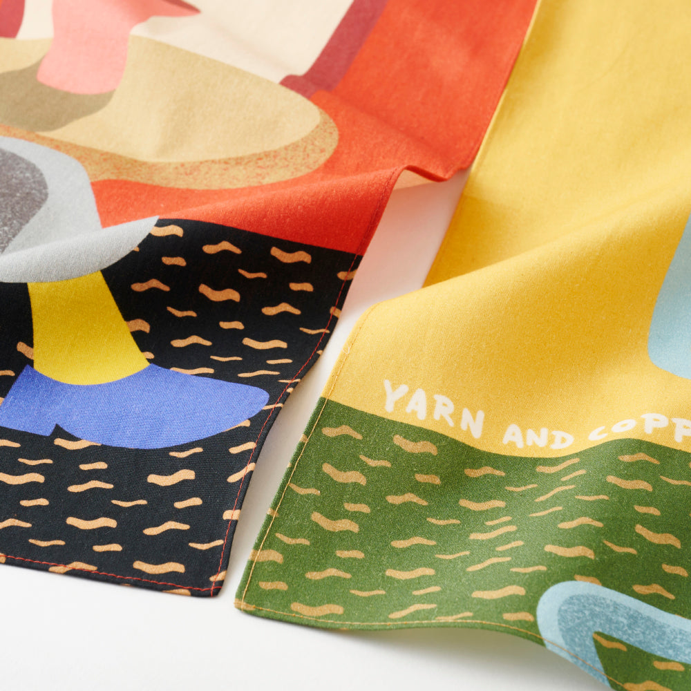 Organic cotton 'Decor' red and yellow ハンカチ/ポケットチーフ