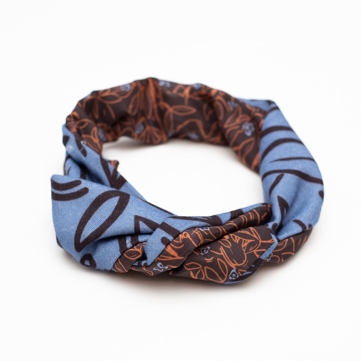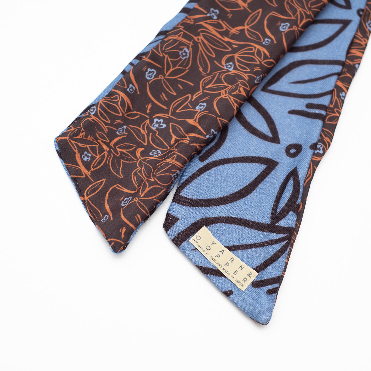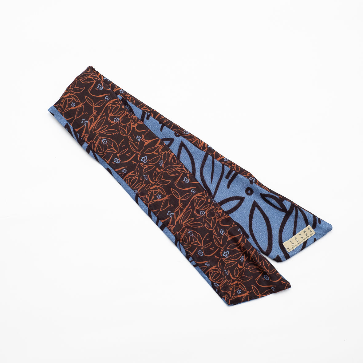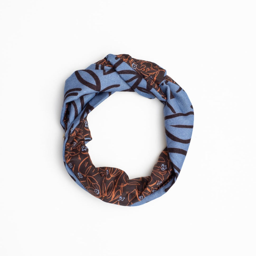 Silk/Wool 'Flowers' blue/brown リバーシブルヘッドスカーフ
