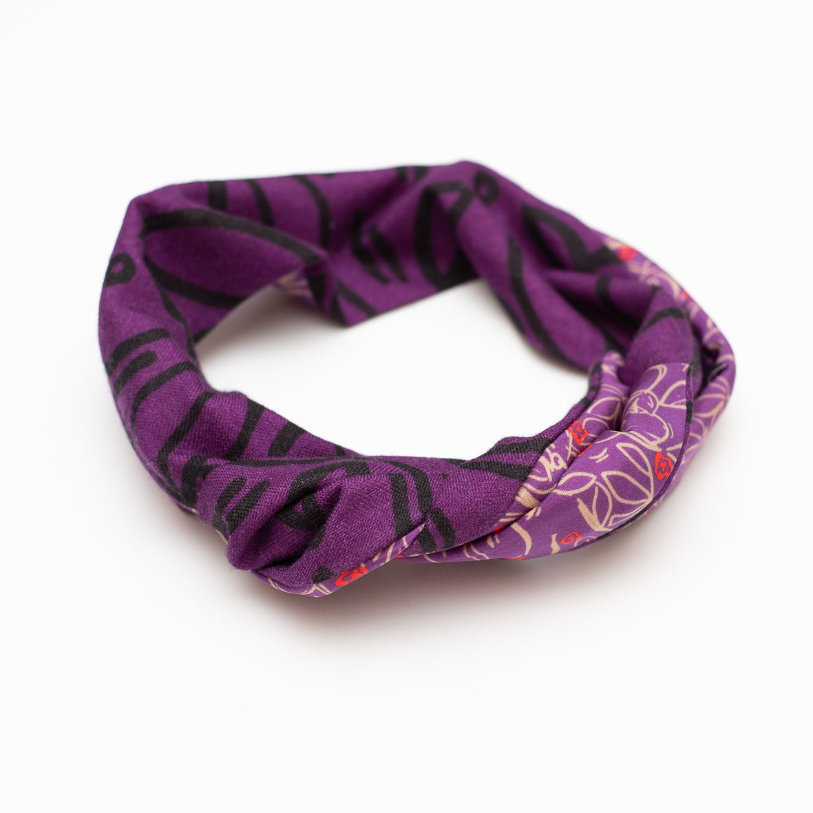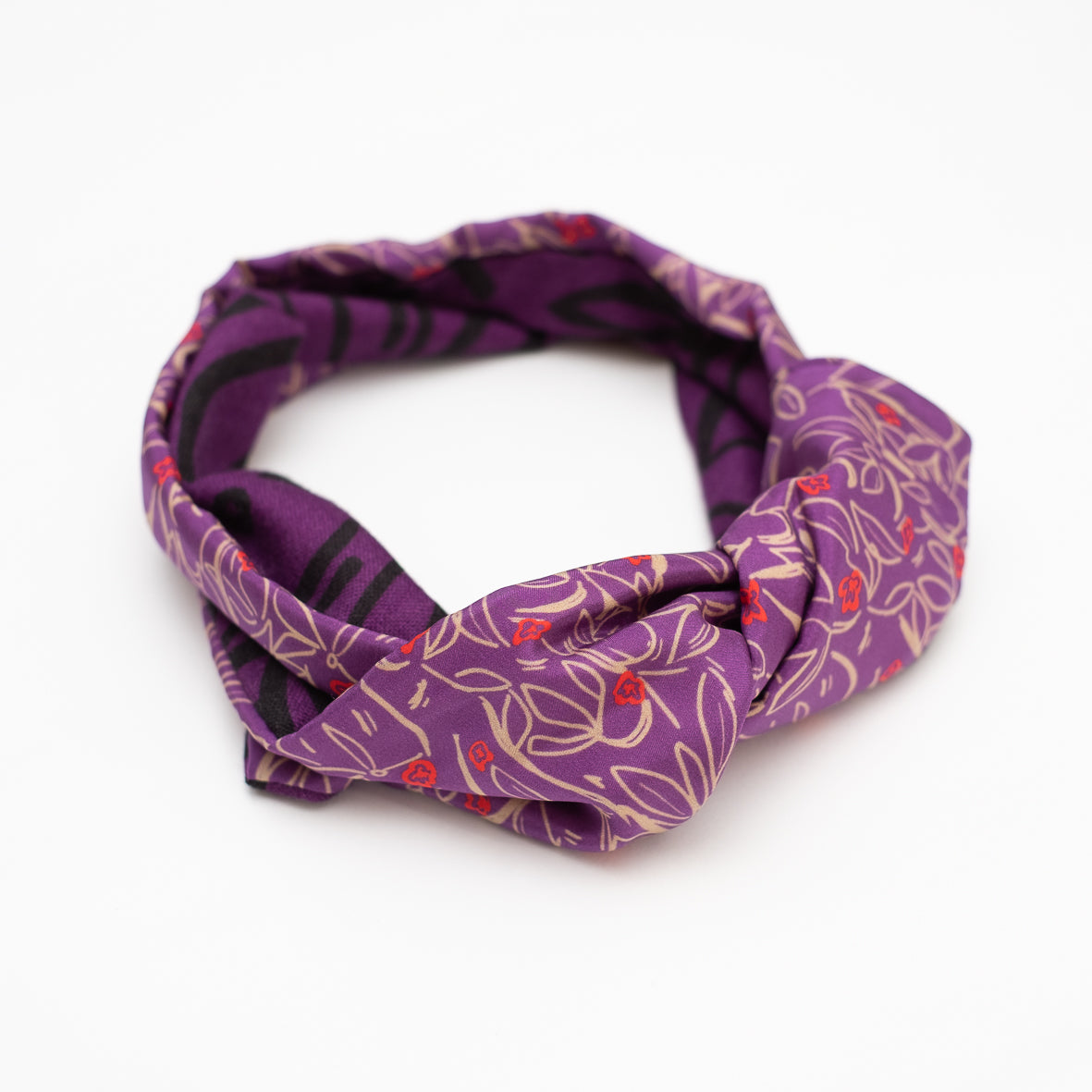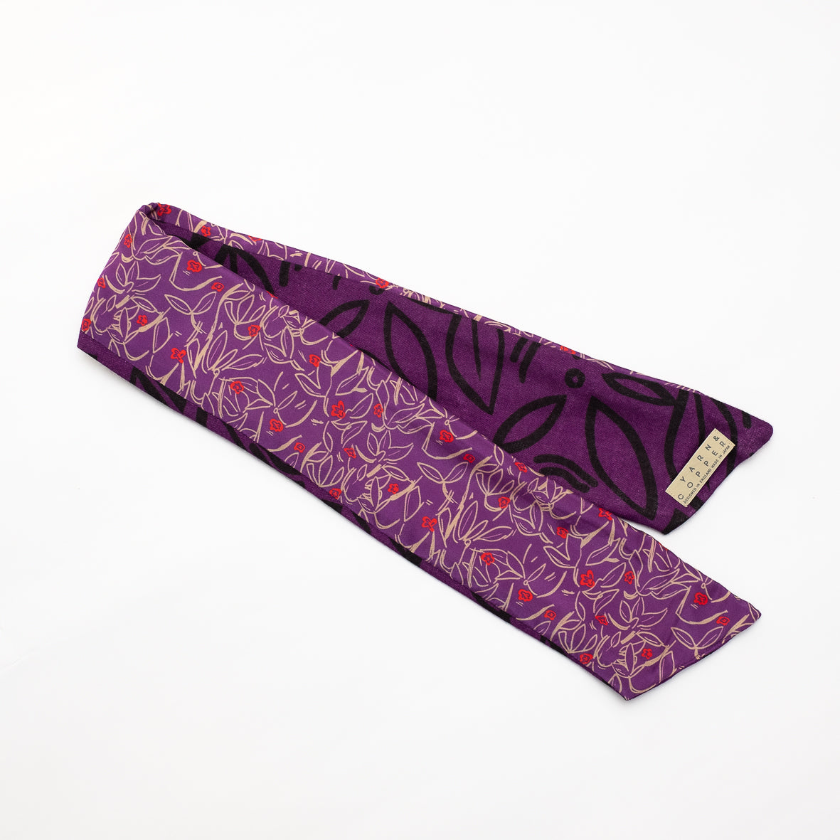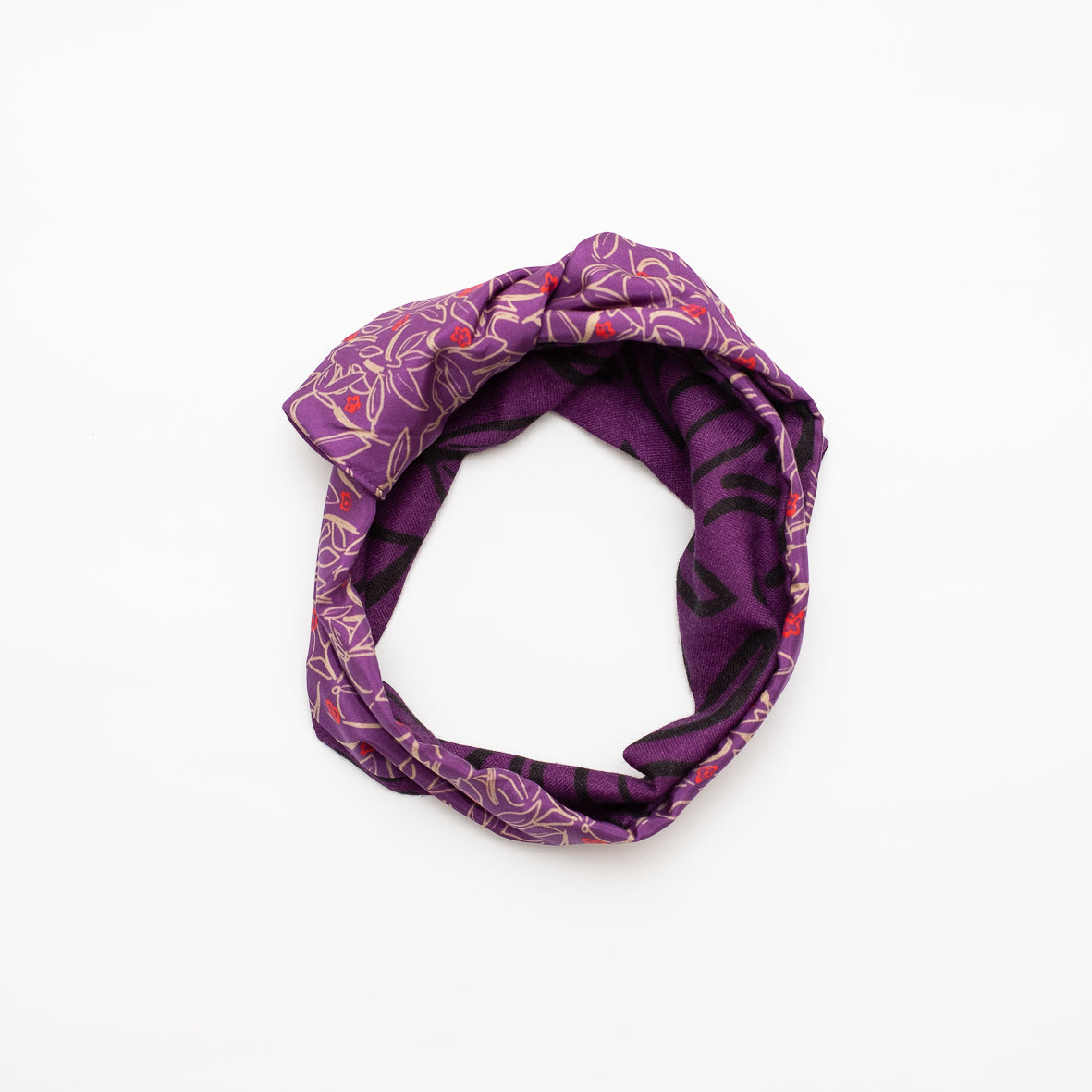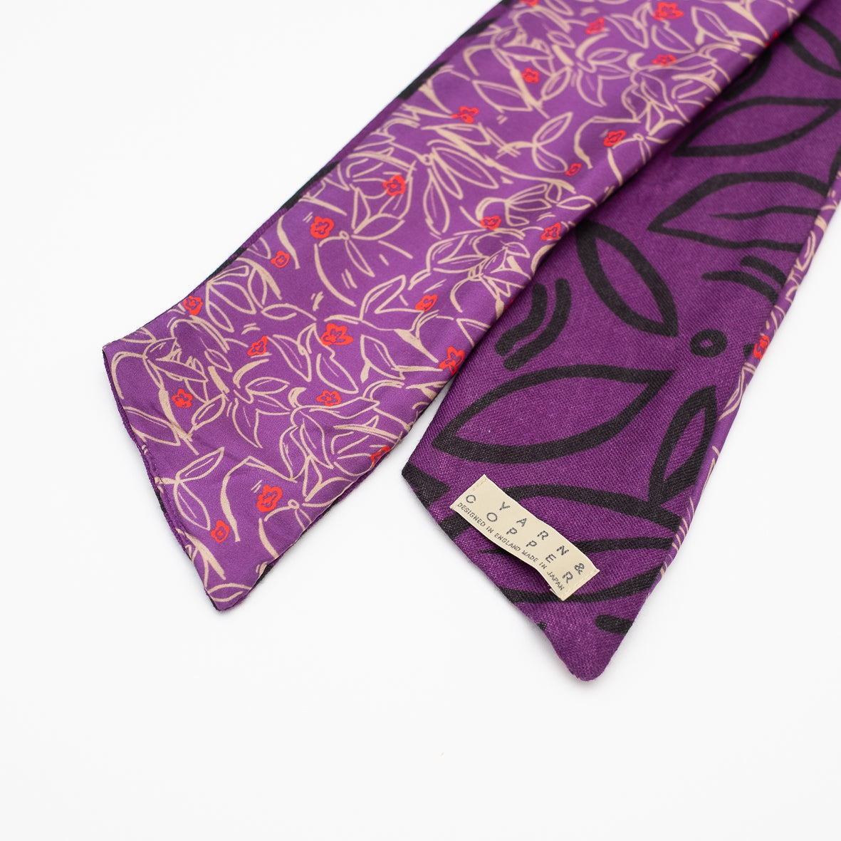 Silk/Wool 'Flowers' purple リバーシブルヘッドスカーフ