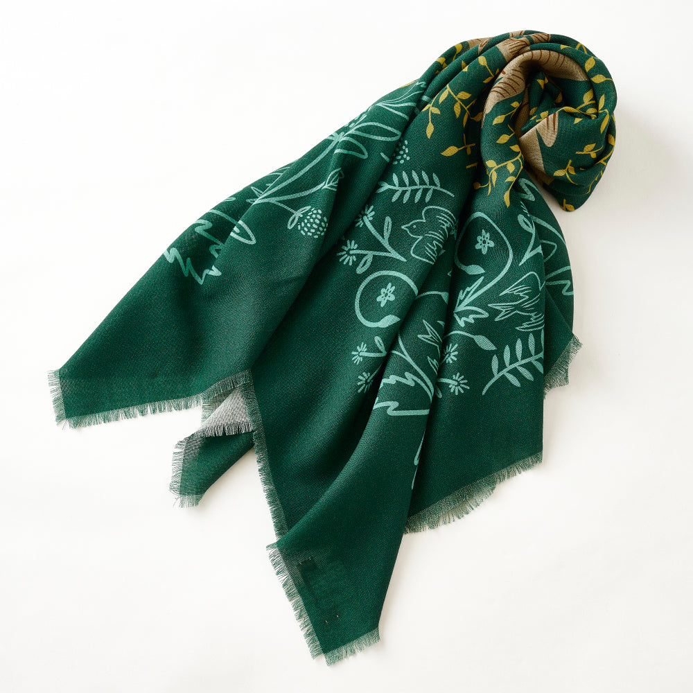 A large square scarf made from soft and delicate merino wool carefully woven in Bishu (Aichi).