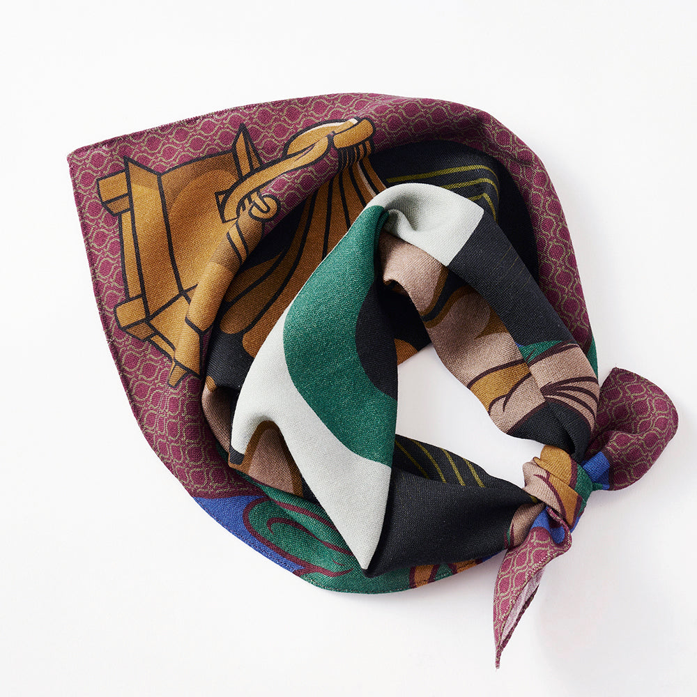 尾州(愛知)でていねいに織られた、柔らかく繊細なメリノウールを使った、ミニタイプの正方形スカーフ。