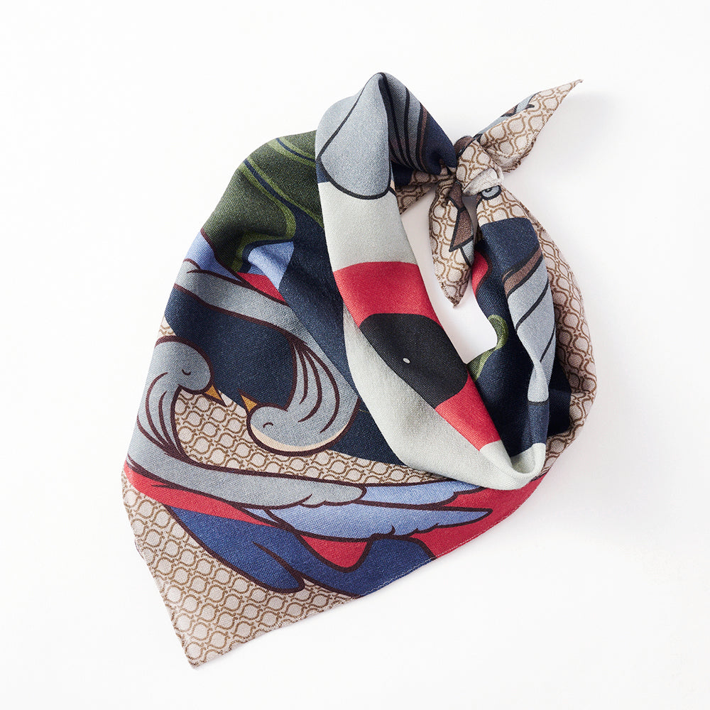 尾州(愛知)でていねいに織られた、柔らかく繊細なメリノウールを使った、ミニタイプの正方形スカーフ。