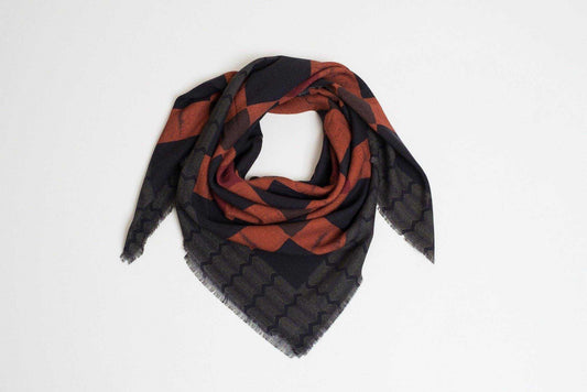 Écharpe carrée noire en laine mérinos japonaise 'Paddington' | FIL & CUIVRE