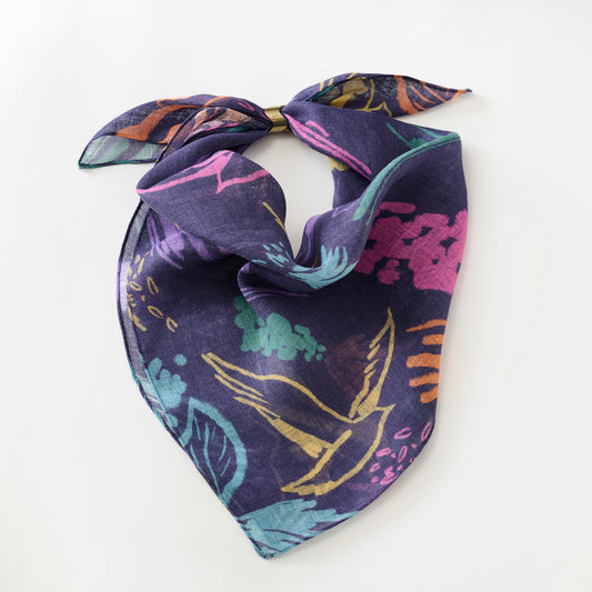 Silk Cotton 'Fashionista' plum リング付きミニスカーフ