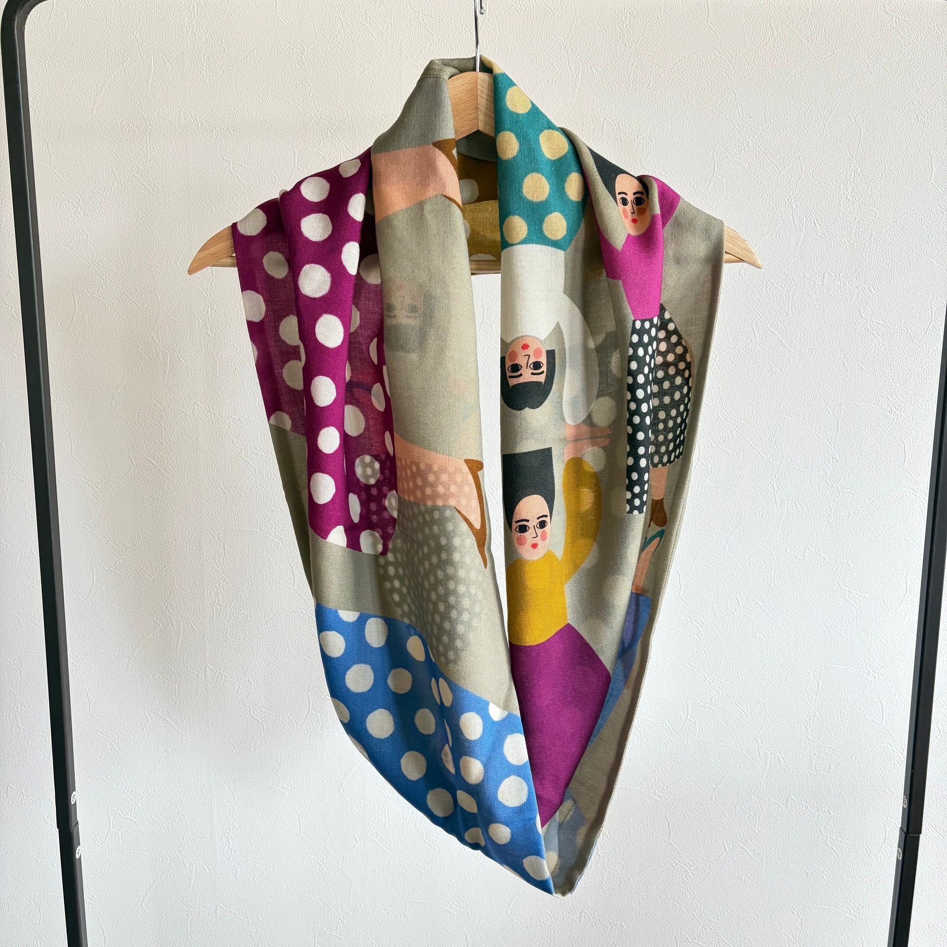 Le mélange de différentes matières une fois enveloppé est un charme que les autres foulards n'ont pas.