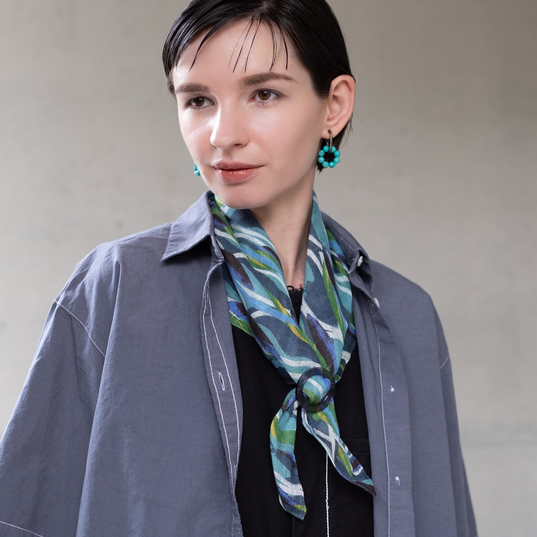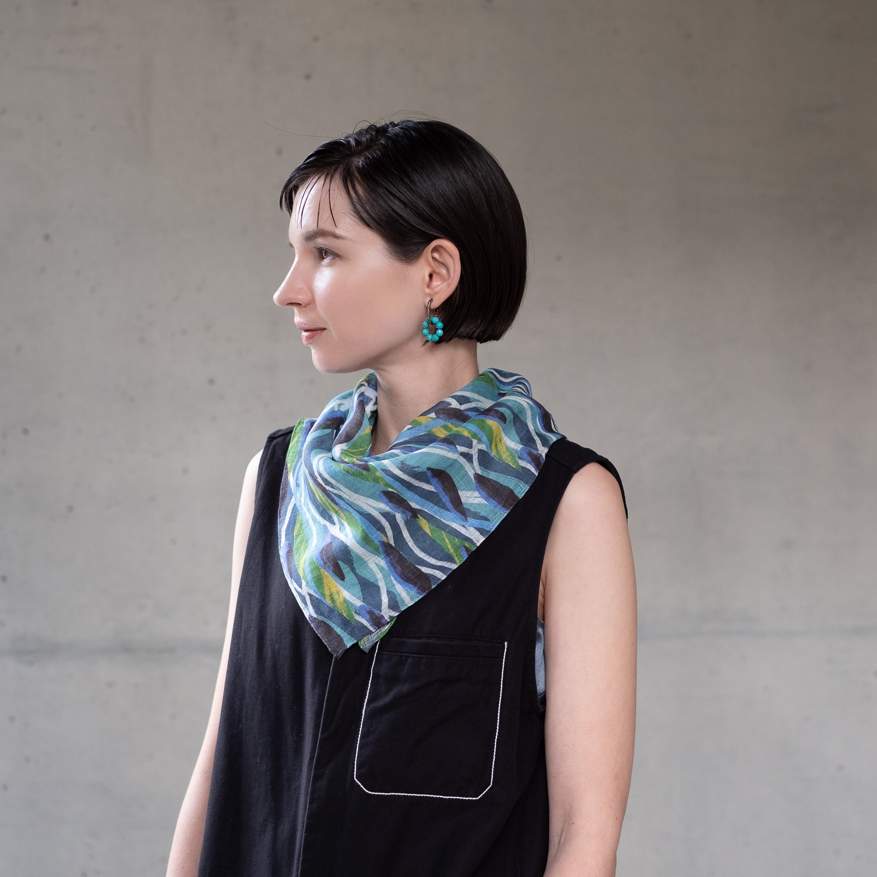 Mini foulard en soie avec anneau de foulard vague original
