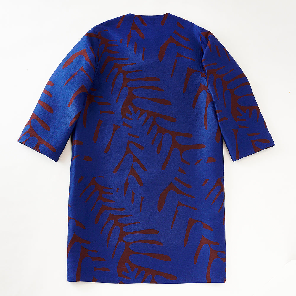 <受注生産:10月中~下予定>播州織 Wool/Cotton ジャガードコクーンコート blue/red brown