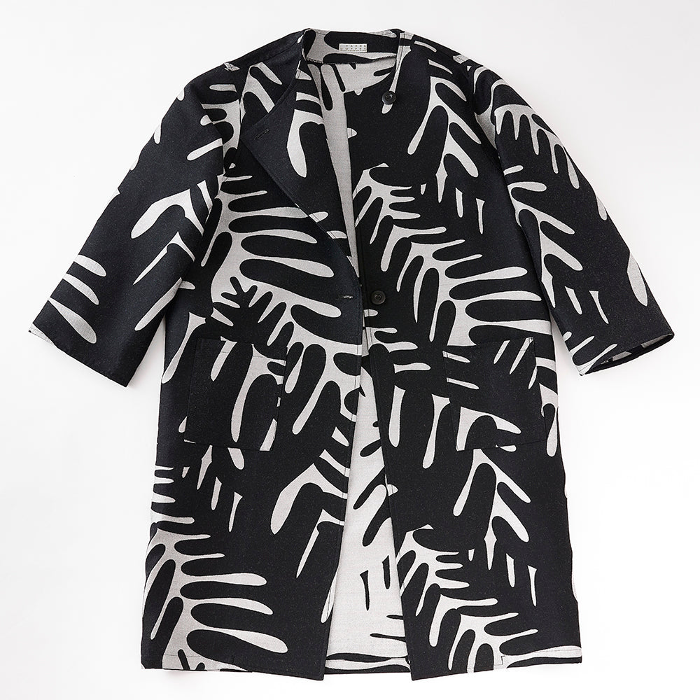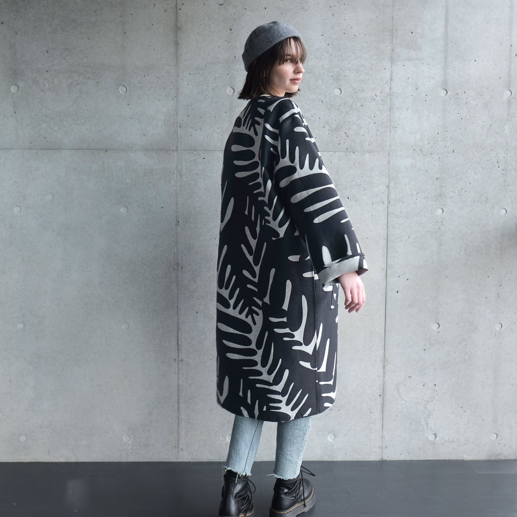 この特別な生地で仕立てたのは、ゆったりとしたコクーン型のコート。