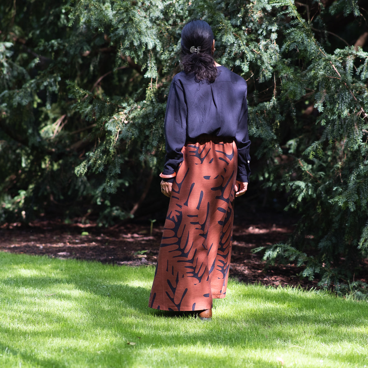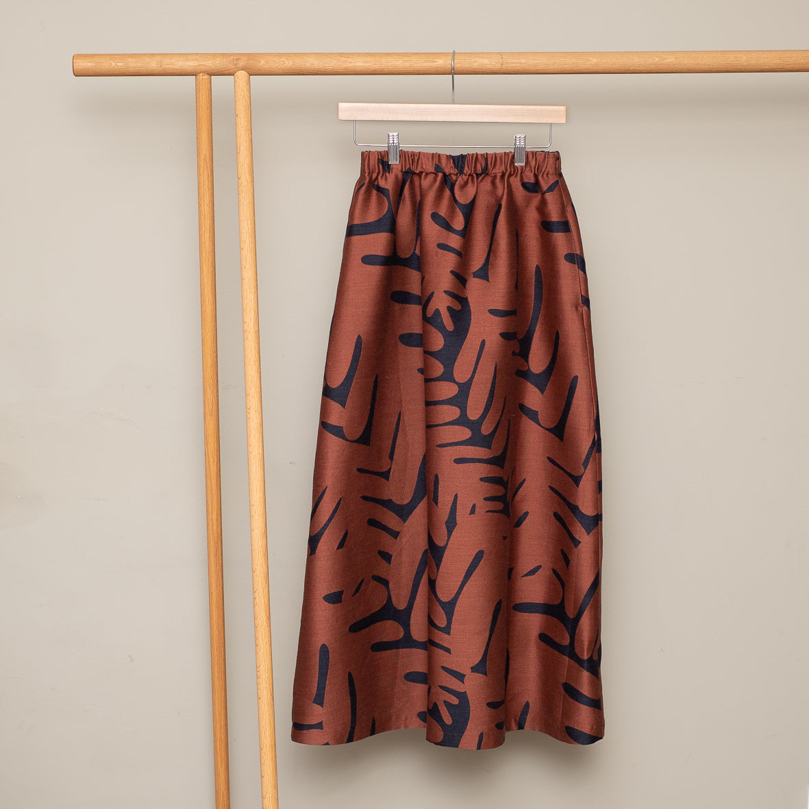 播州織 Wool/Cotton Jacquard Long Skirt - brown/dark grey