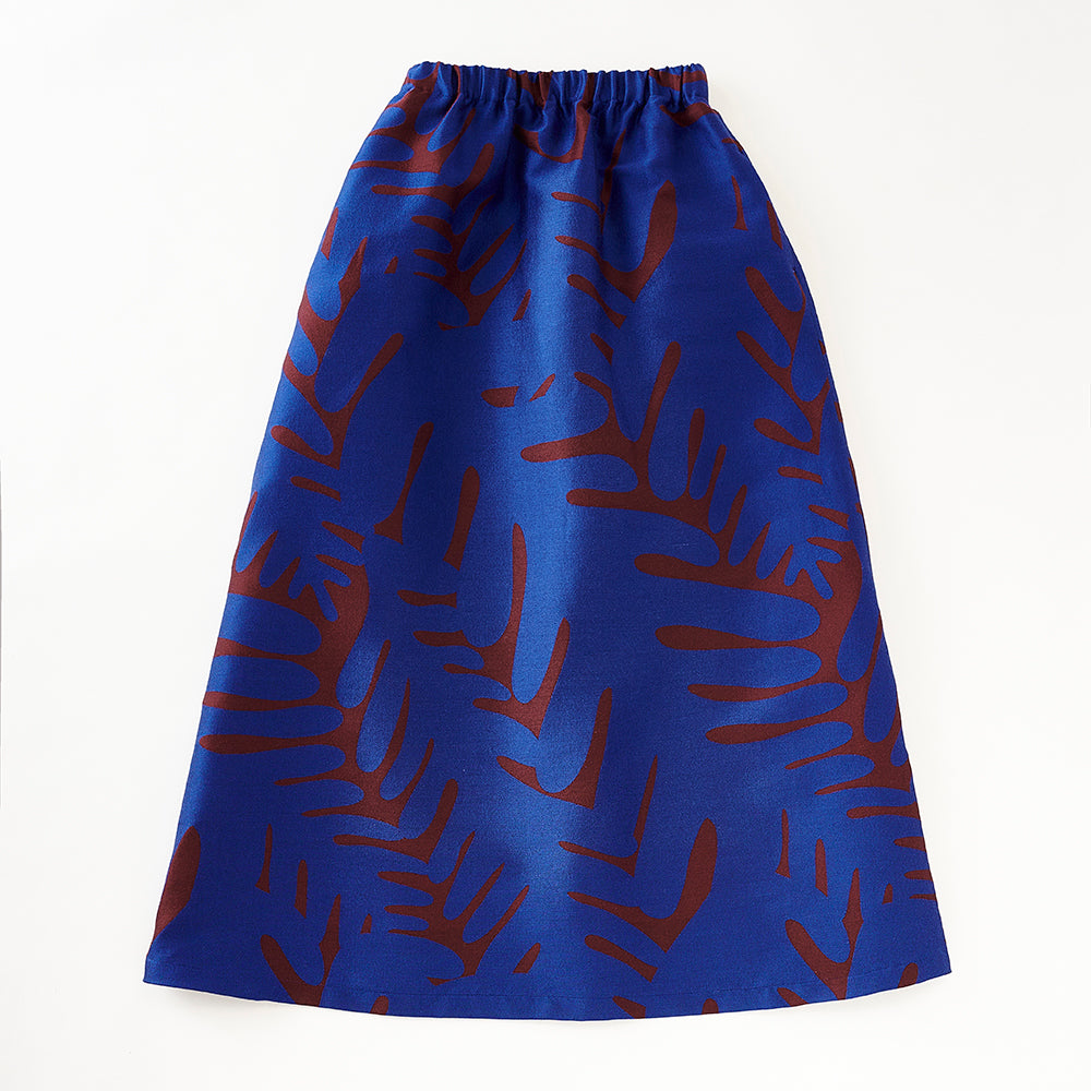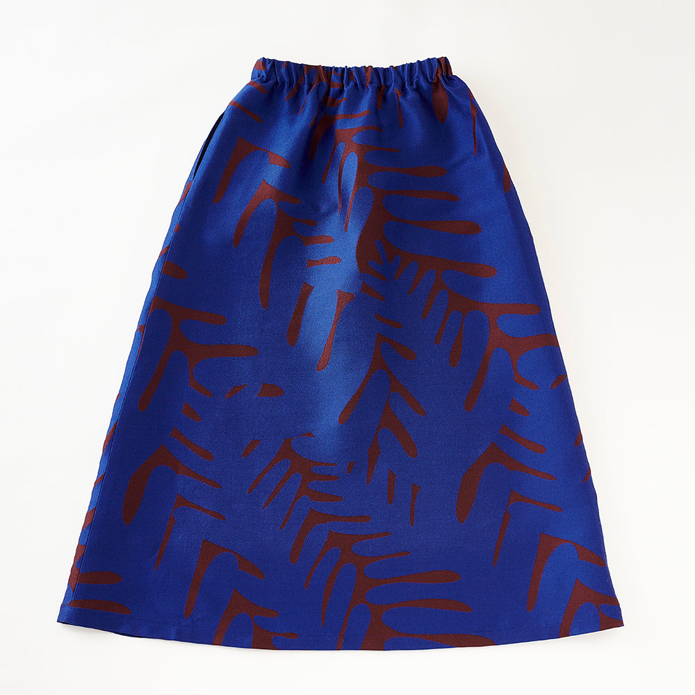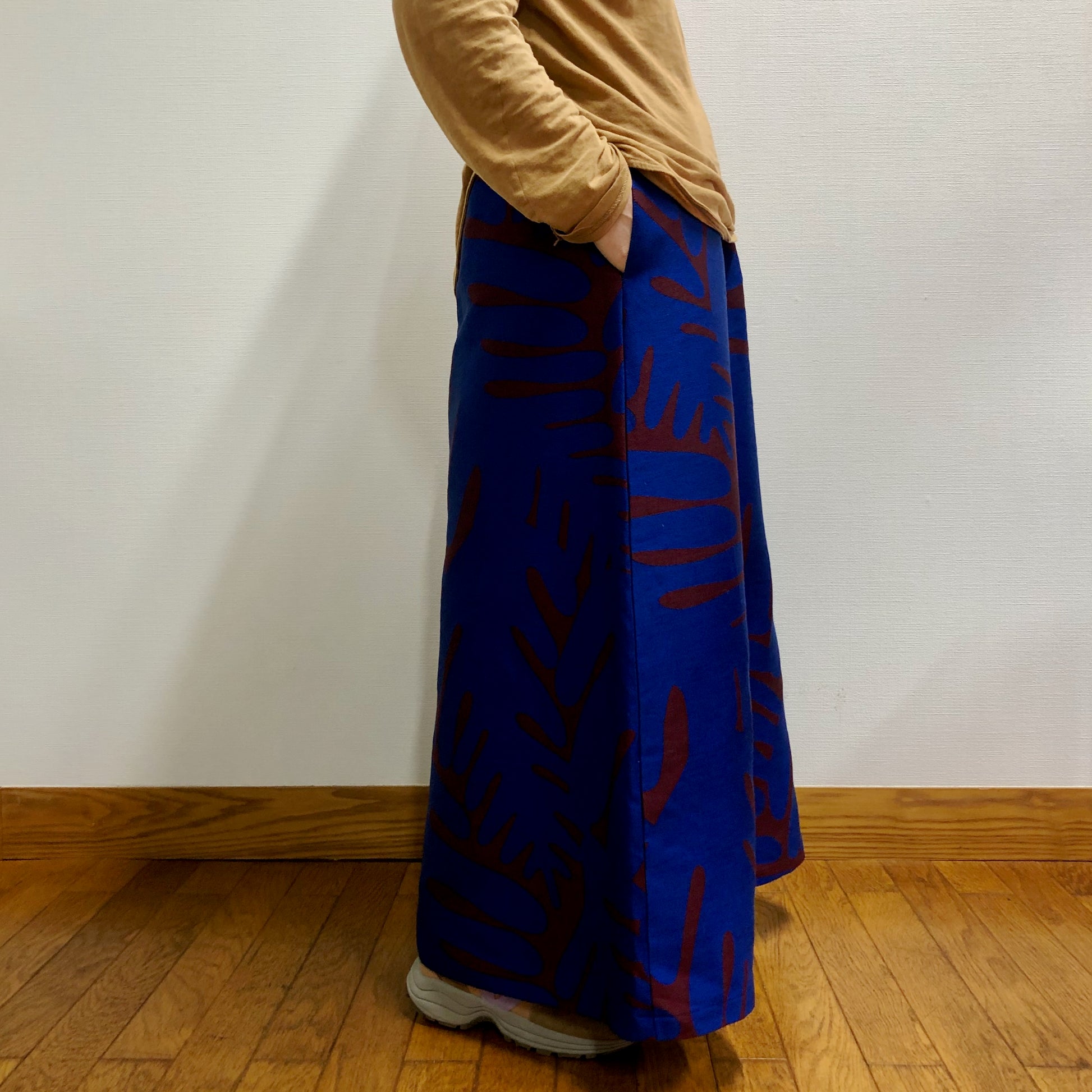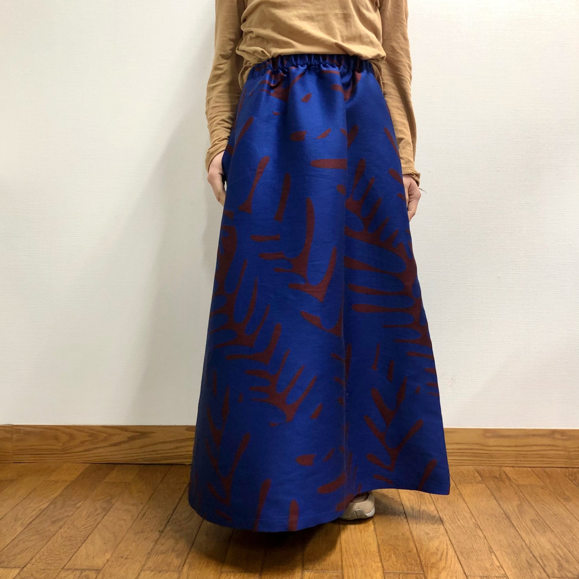 播州織 Wool/Cotton ジャガードロングスカート - blue/red brown
