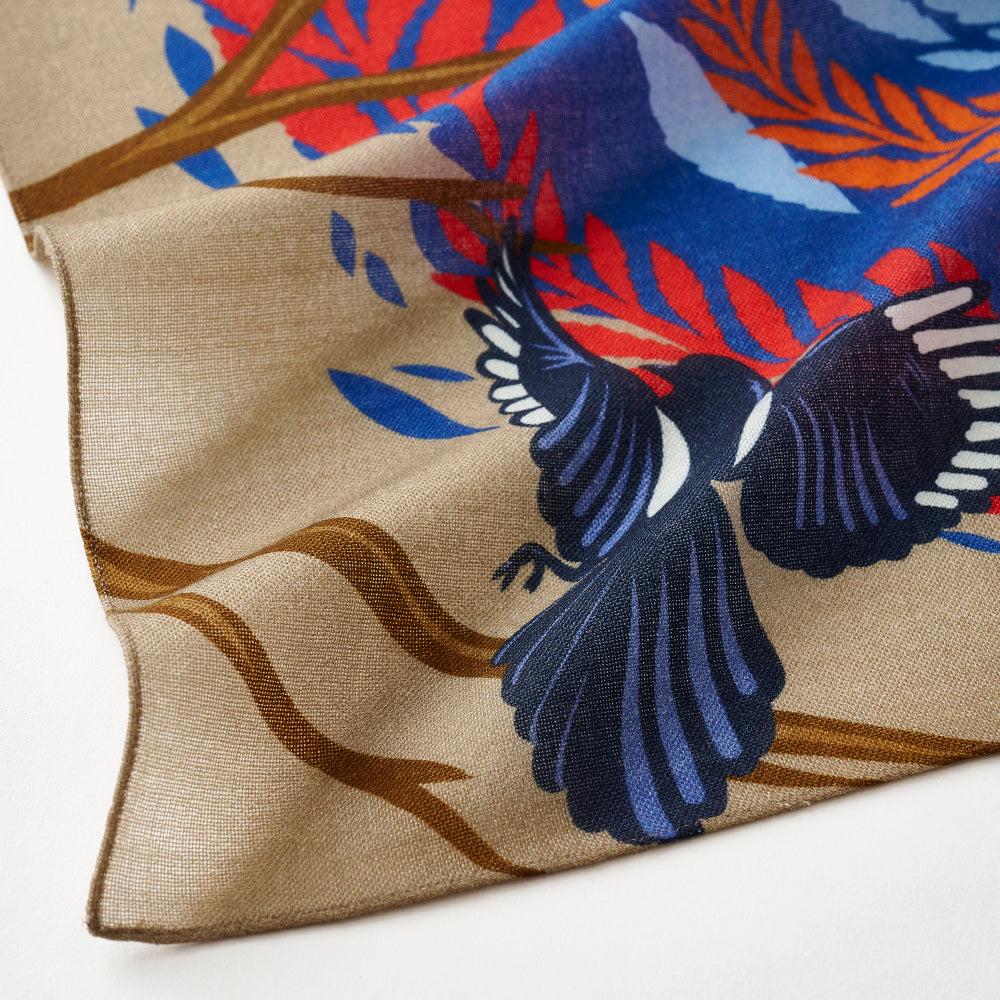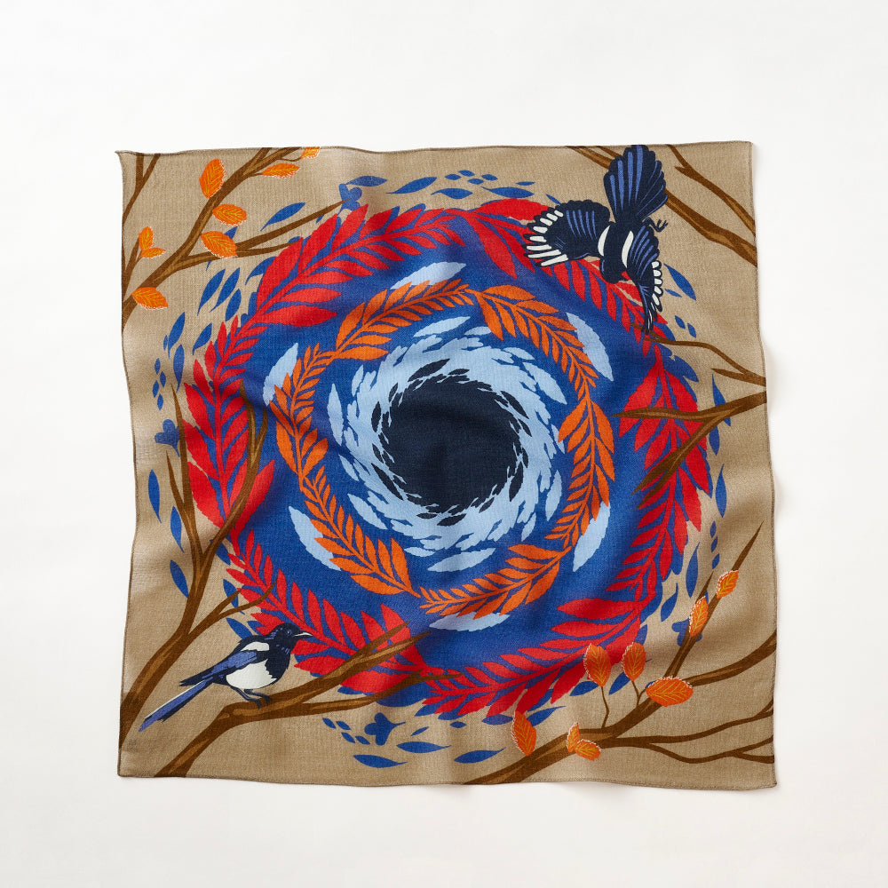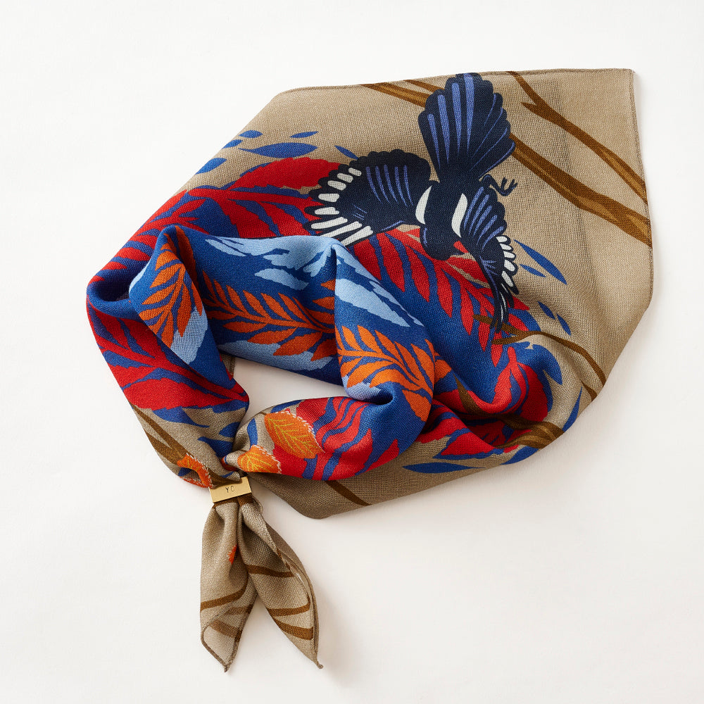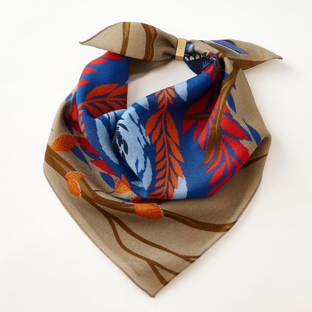 Un mini foulard (foulard) en soie qui peut être agencé avec un anneau de foulard ondulé en laiton.