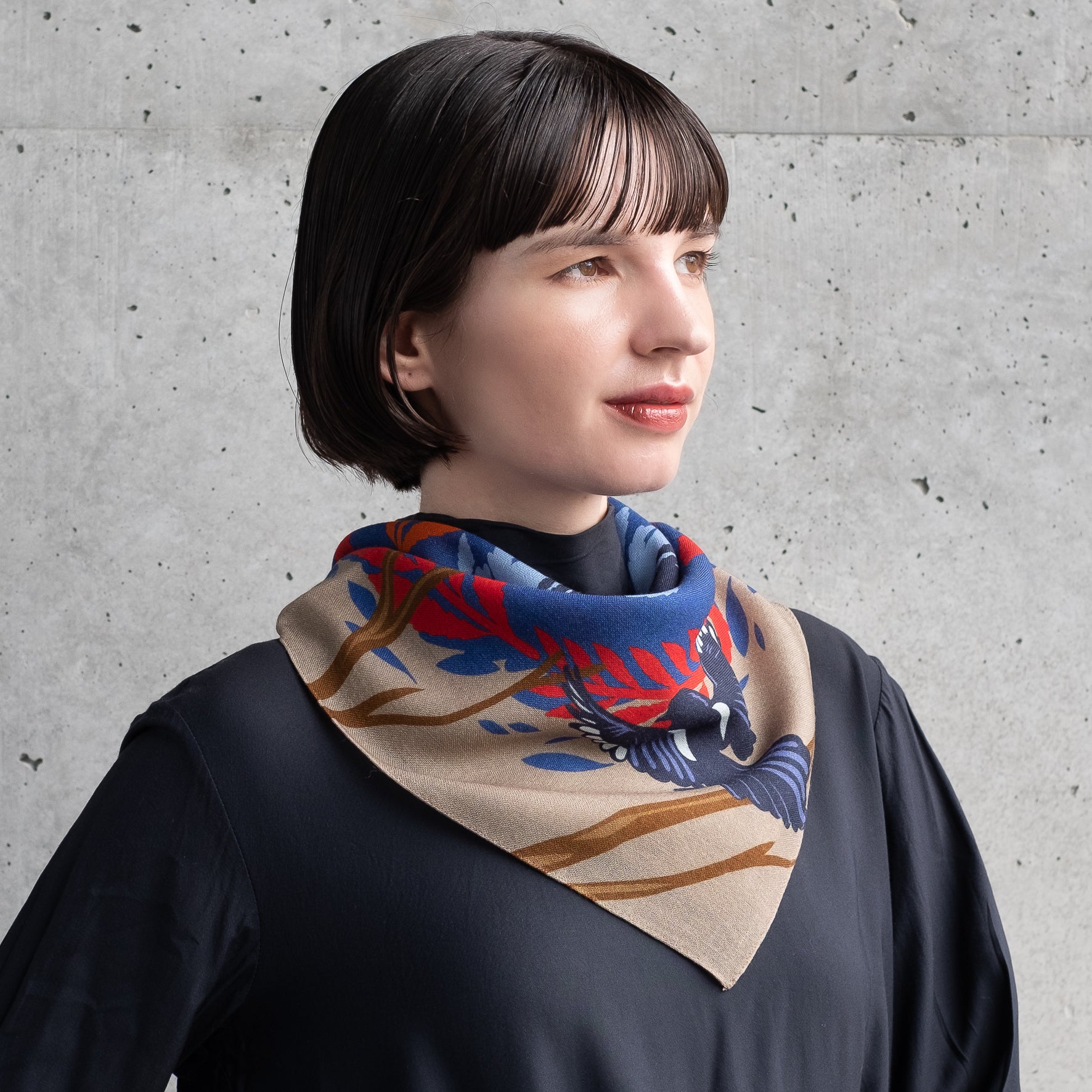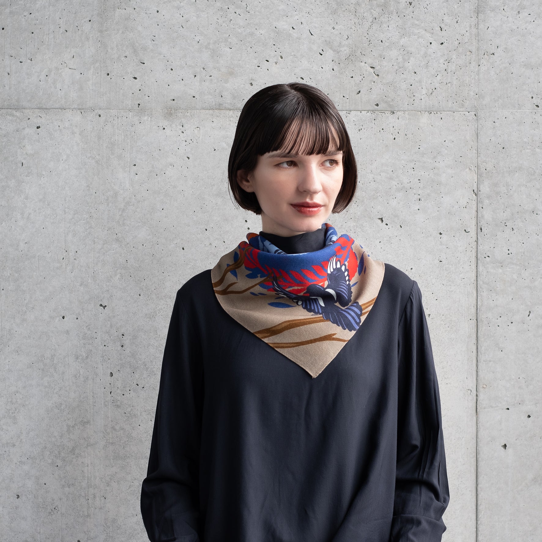 Mini-écharpe bleu marine en soie imprimée japonaise 'Polka Dot Queen' avec anneau vague