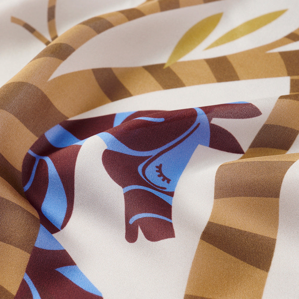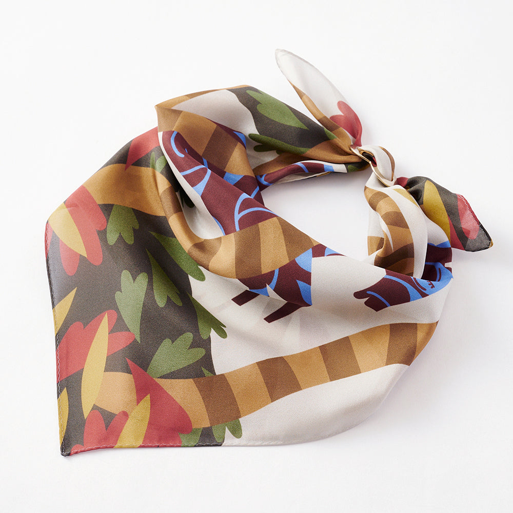 Mini foulard en soie imprimé japonais avec anneau de foulard original