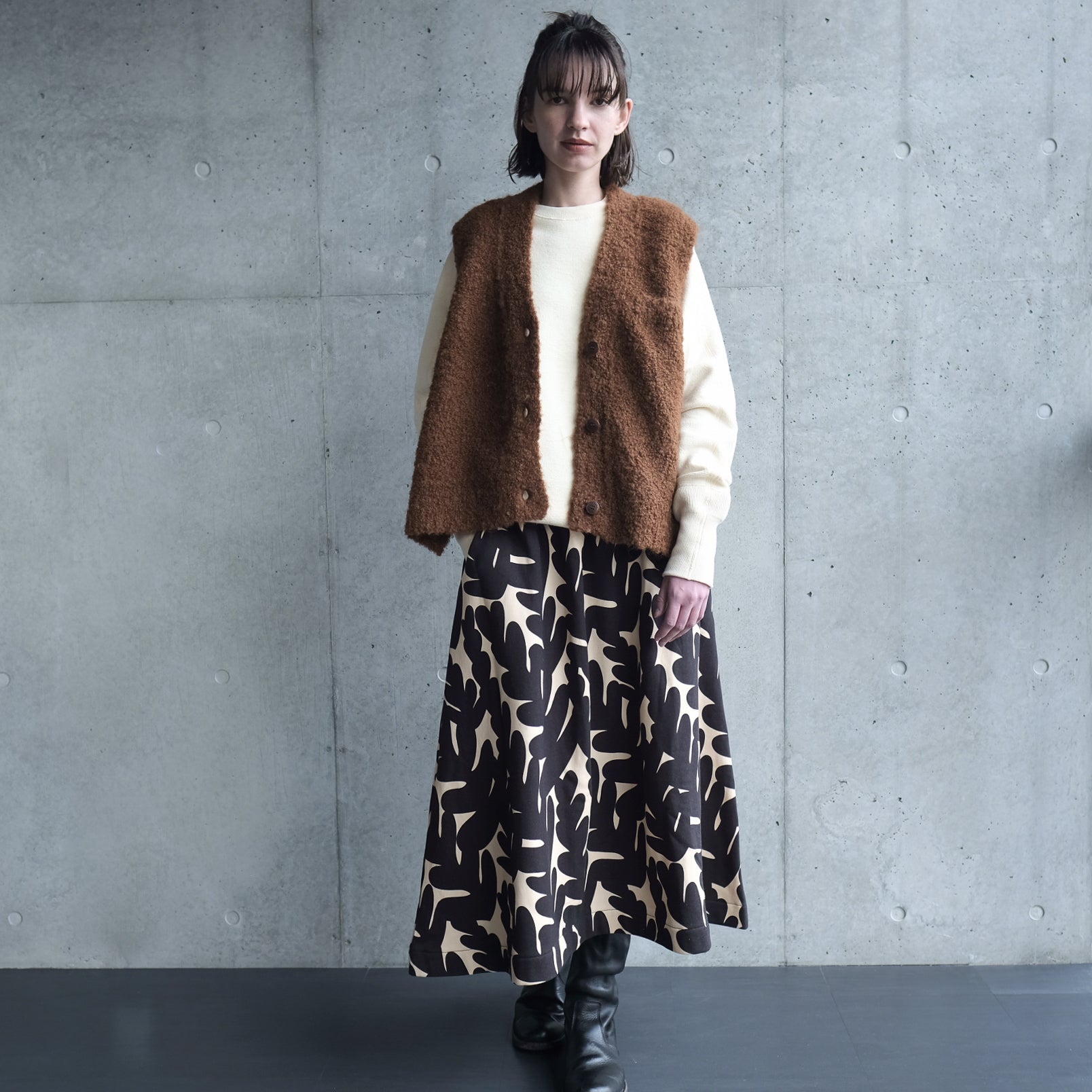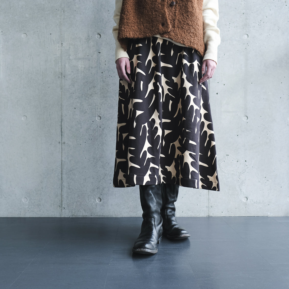裏起毛 オーガニックコットンギャザースカート 'British Fern' black