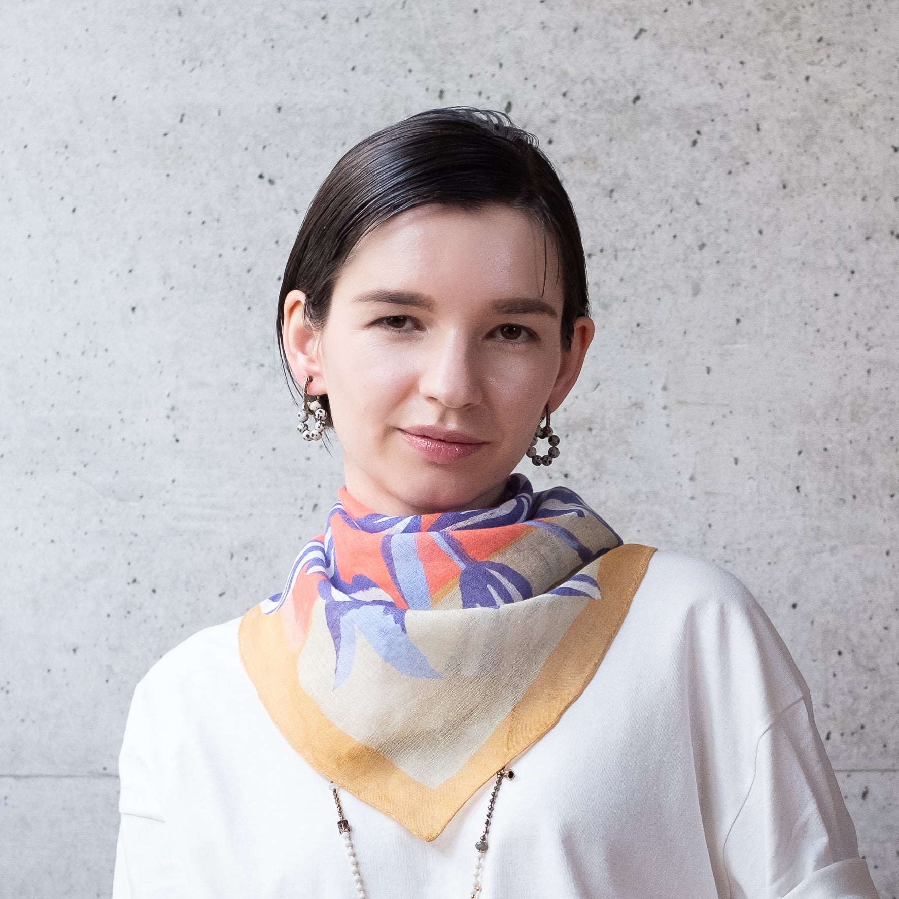 Mini foulard en soie avec anneau de foulard vague original