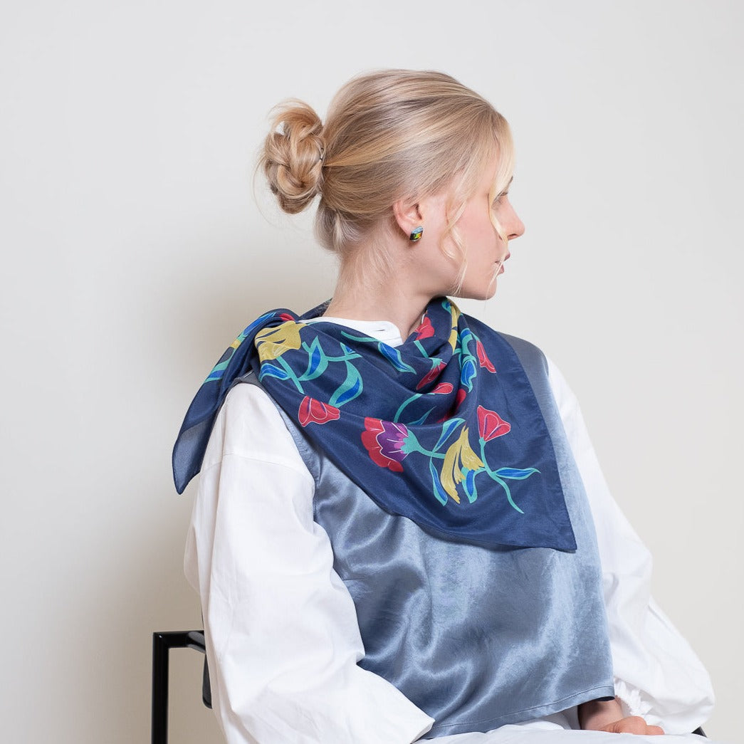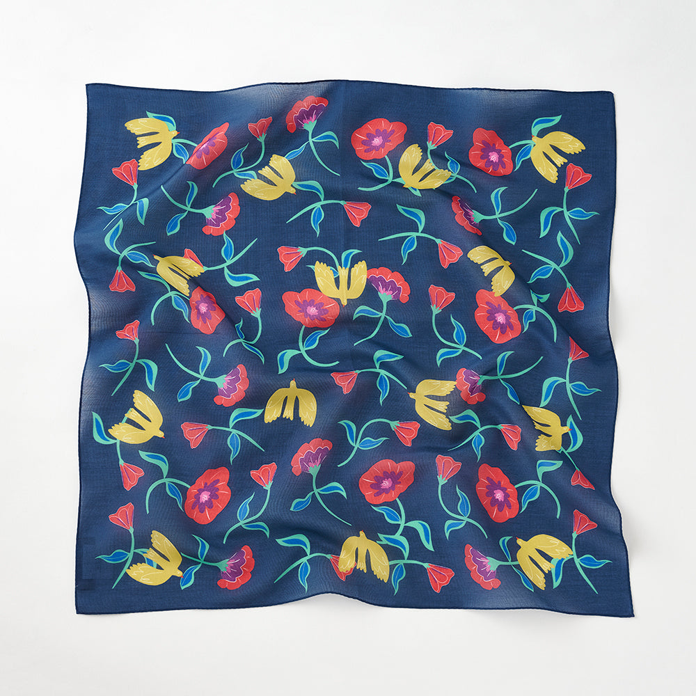 Silk Cotton 'Tamworth' navy 大判スカーフ