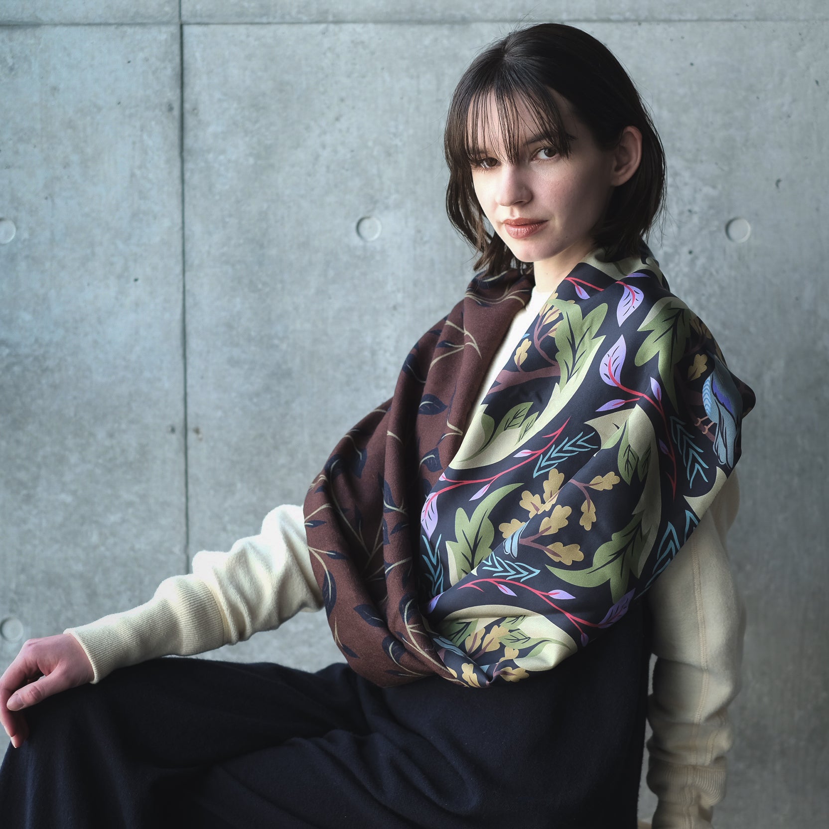 巻いた時の異素材のミックスが、他のスカーフにはない魅力です。