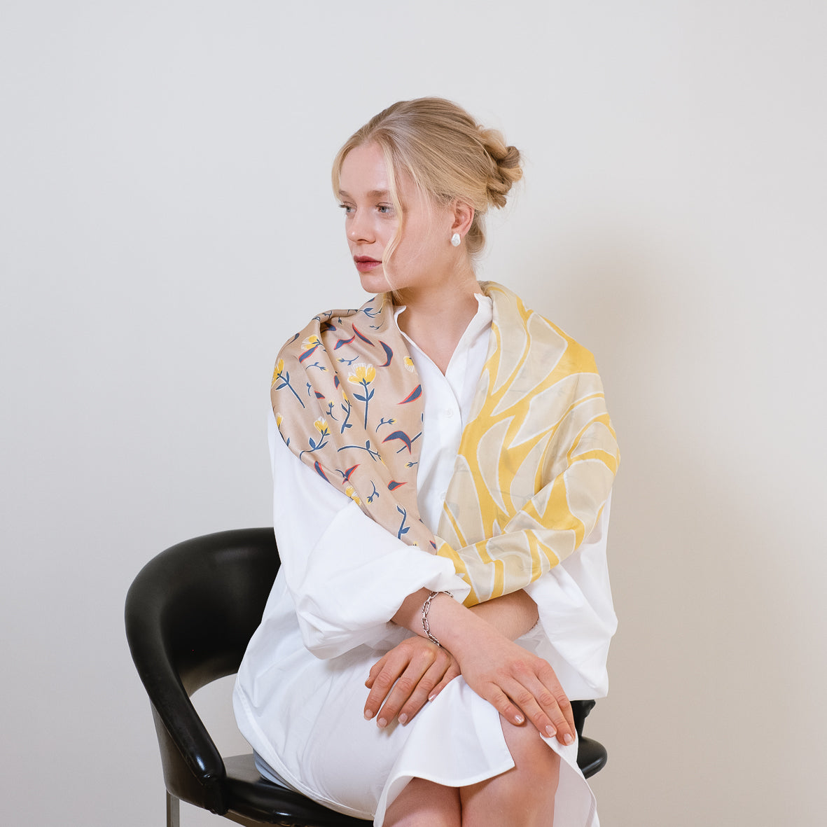 Silk/Silk 'Wingham' beige+yellow ループスカーフ