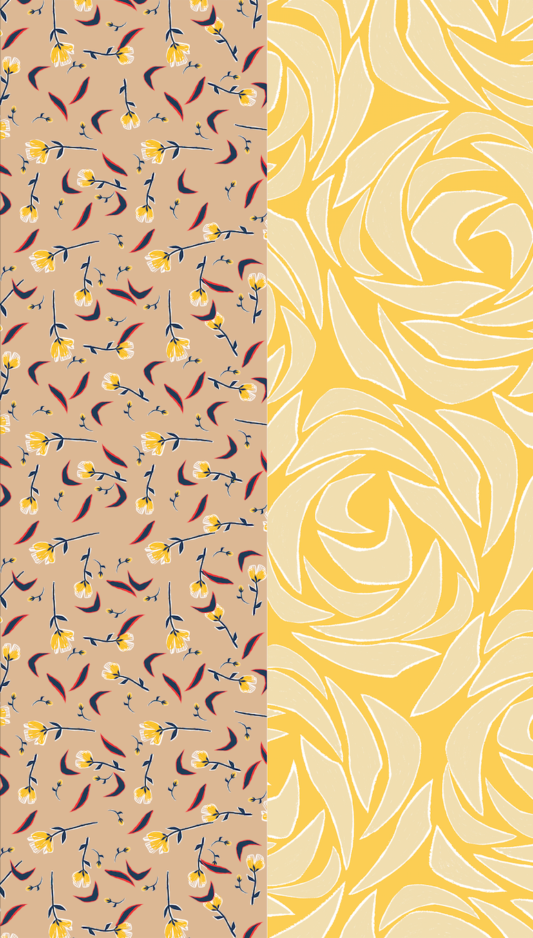 A floral pattern with a touch of elegance. The colours were carefully chosen to make this a colourful and vibrant loop scarf. One side, smaller flowers are arranged randomly and the other bigger petals with a simpler yet bolder appearance.