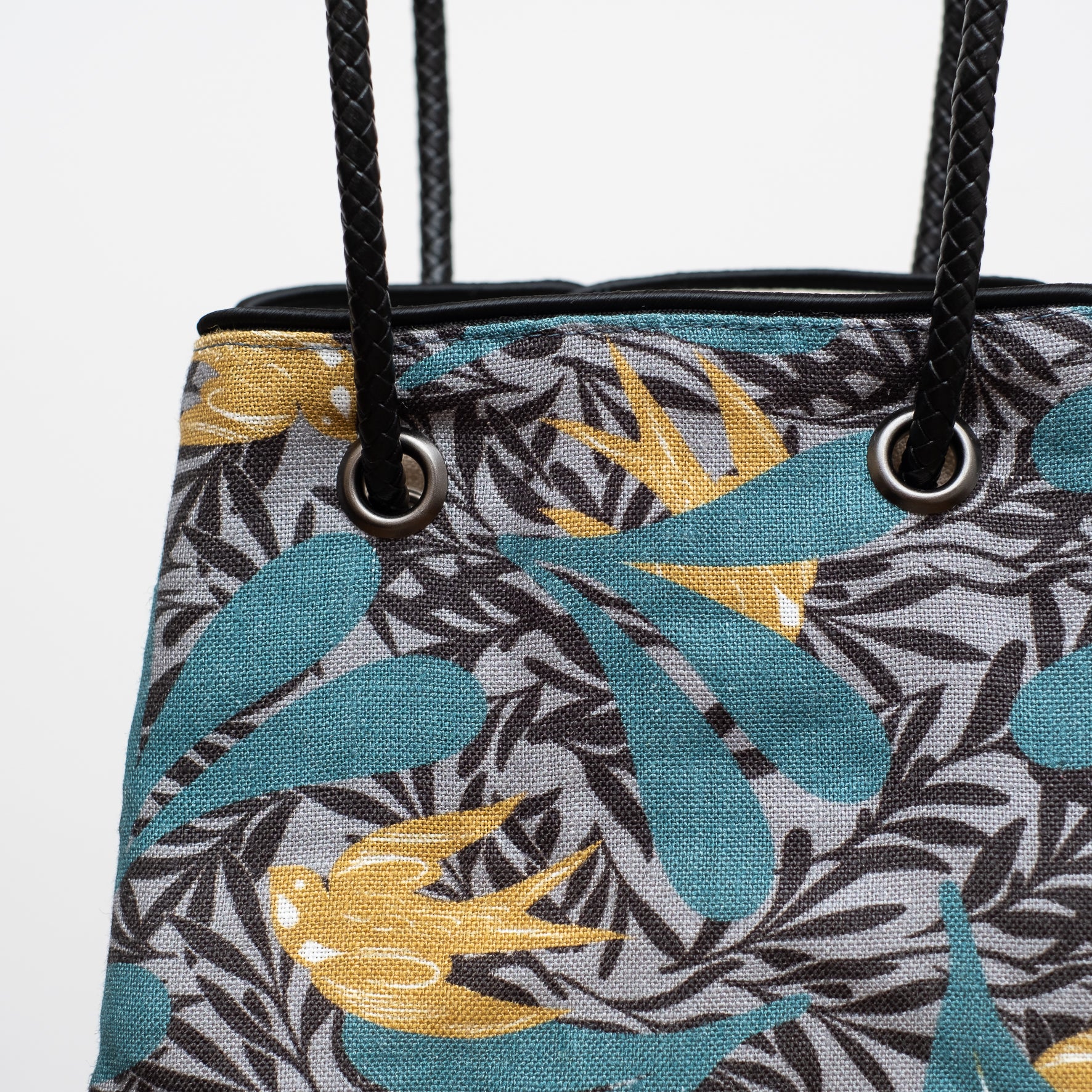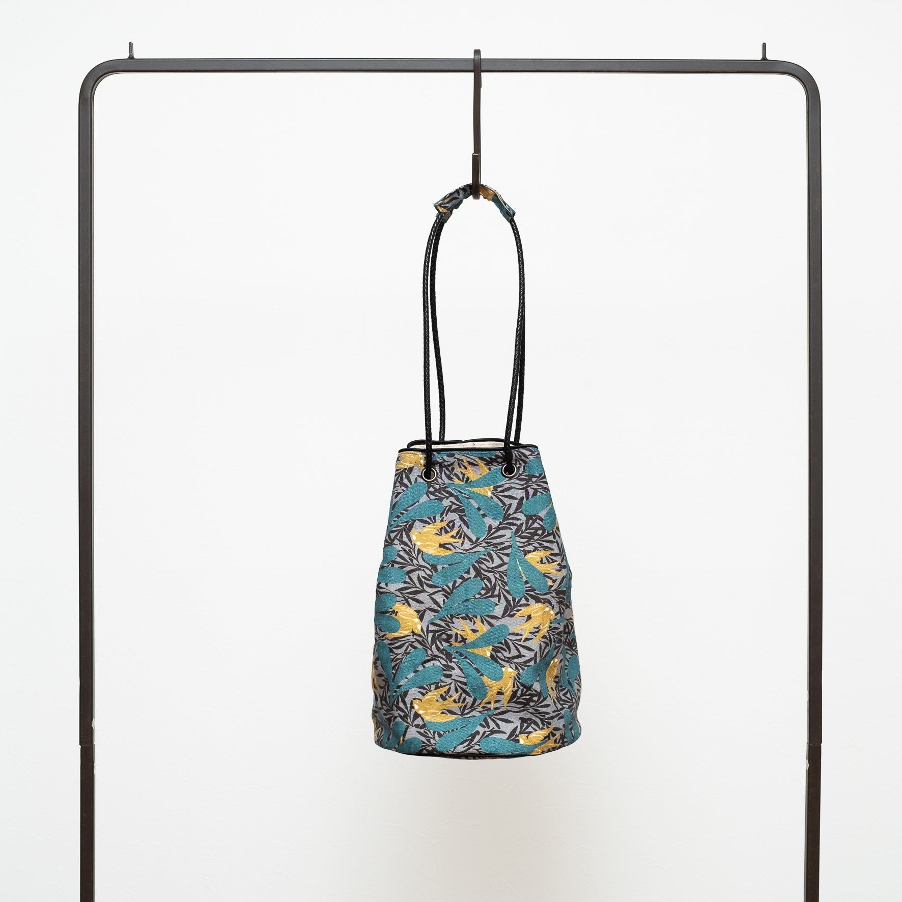 Sac seau en lin imprimé japonais 'Dalston' Aqua | YARN&COPPER