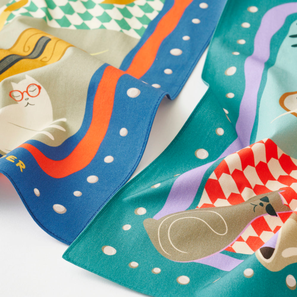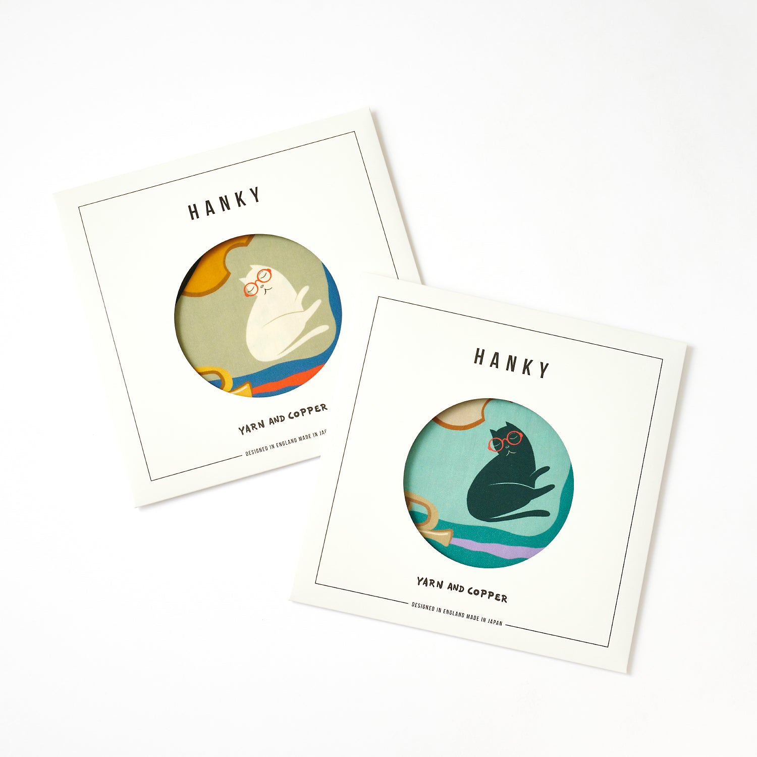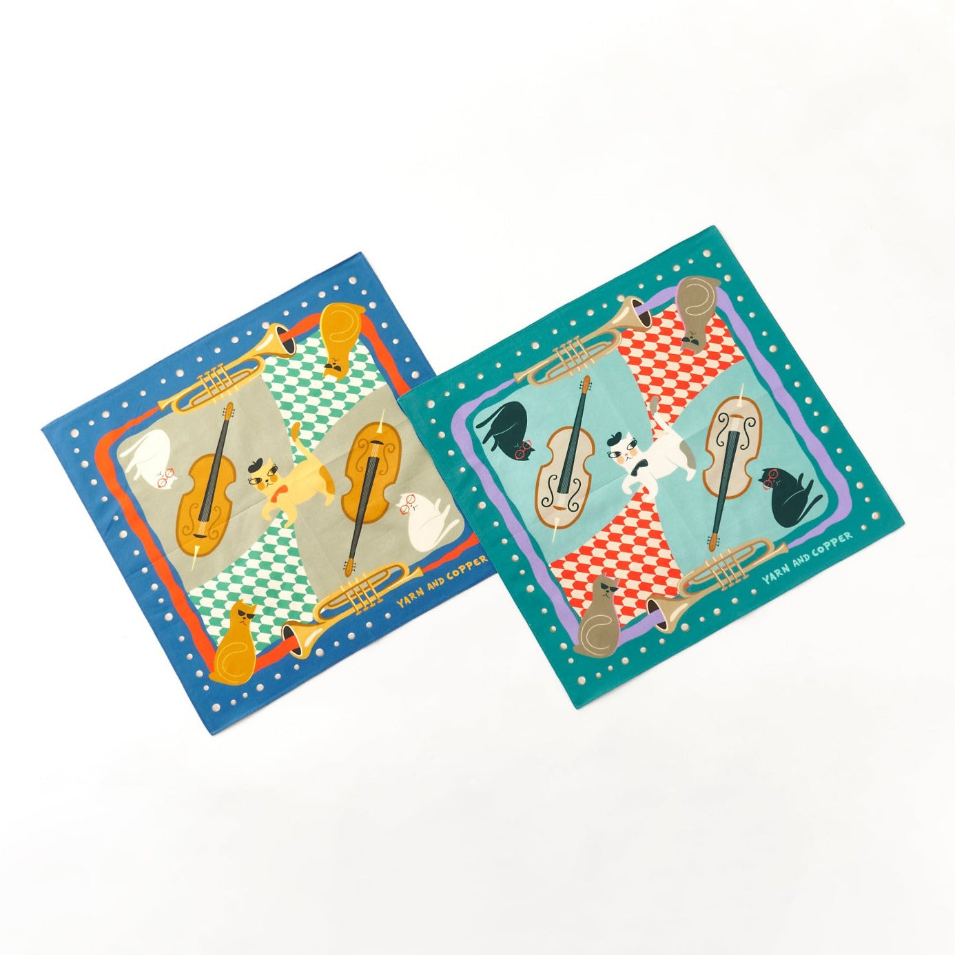 Organic cotton 'Jazz Cats' navy and emerald green ハンカチ/ポケットチーフ