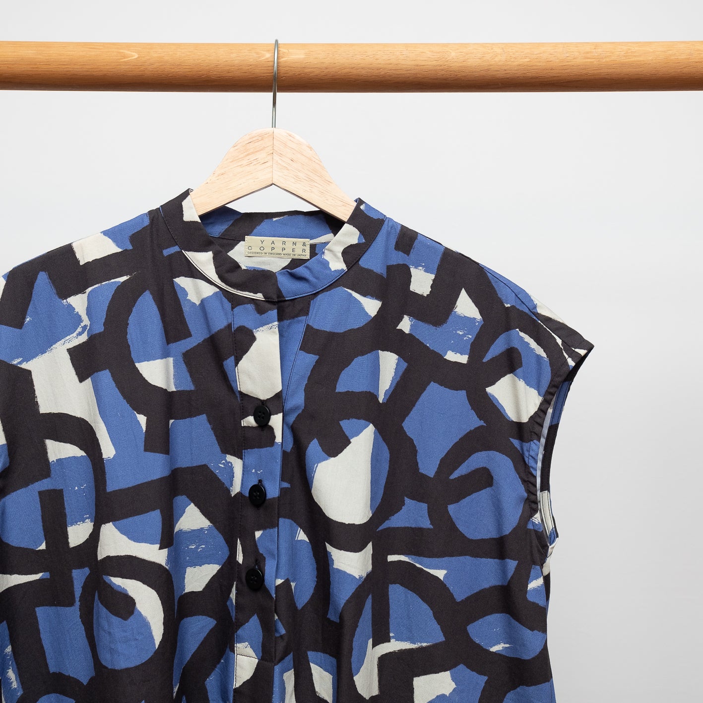 Réapprovisionner! Robe chemise froncée en coton bio imprimé japonais 'Pluto and Beyond'