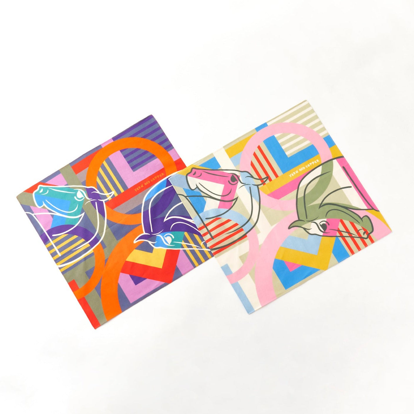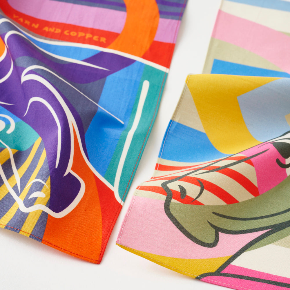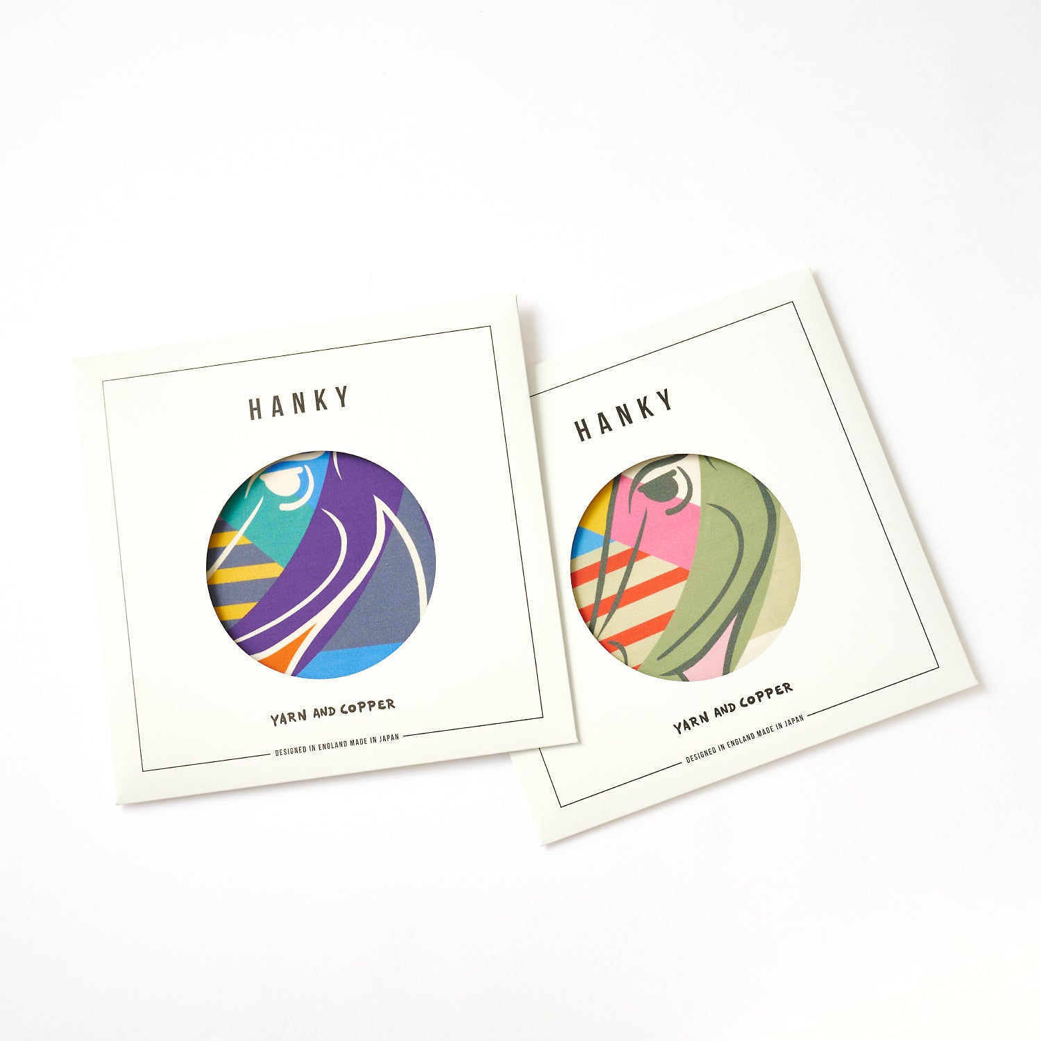 Organic cotton 'Steady Pace' dusty blue and pastel ハンカチ/ポケットチーフ
