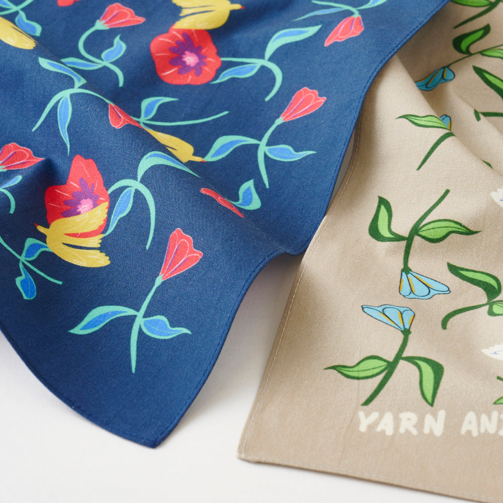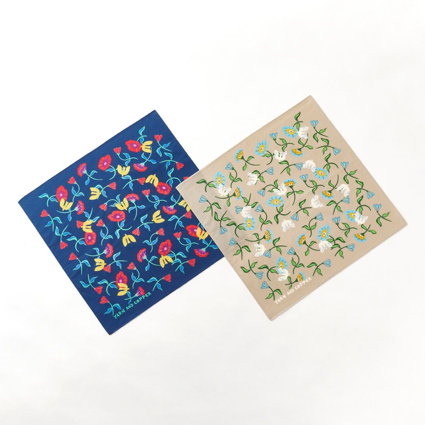 Organic cotton 'Tamworth' navy and sandy grey ハンカチ/ポケットチーフ