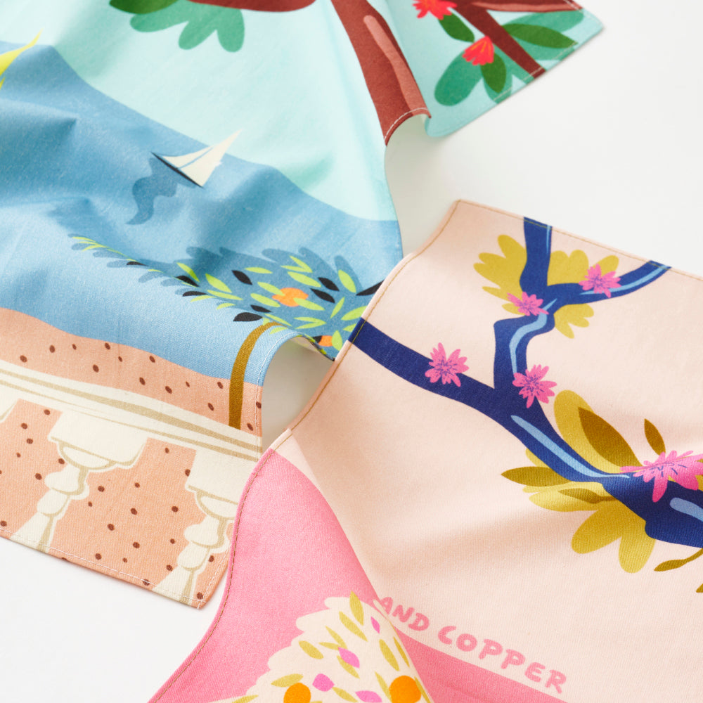 Organic cotton 'Long Summer' sky blue and candy pink ハンカチ/ポケットチーフ