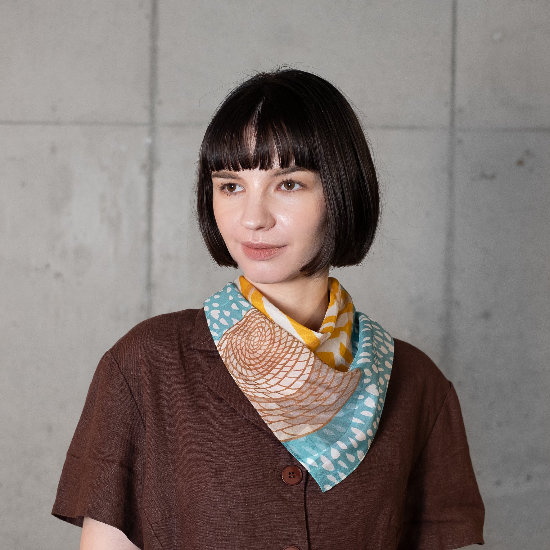 オリジナルスカーフリング付きシルクコットンミニスカーフ