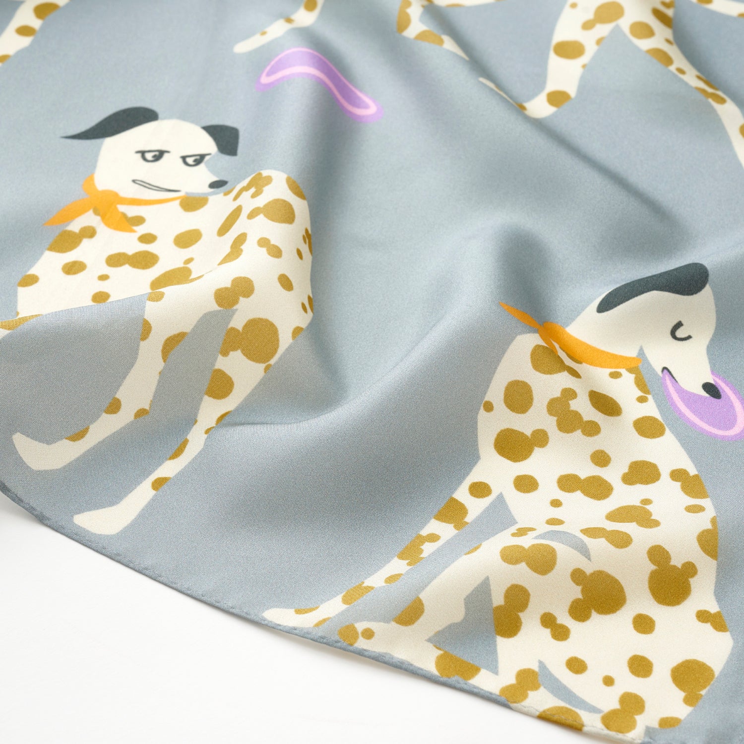 Mini-écharpe bleu marine en soie imprimée japonaise 'Polka Dot Queen' avec anneau vague