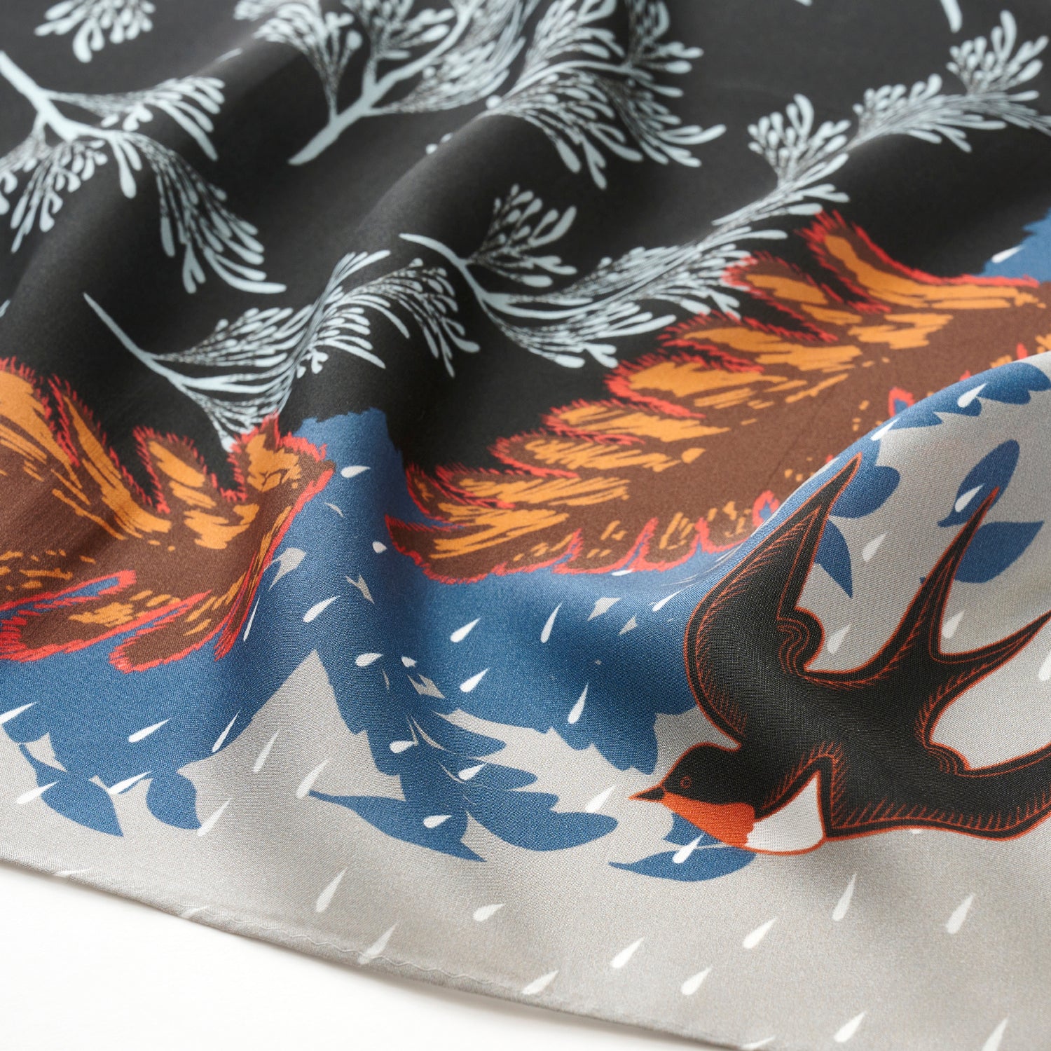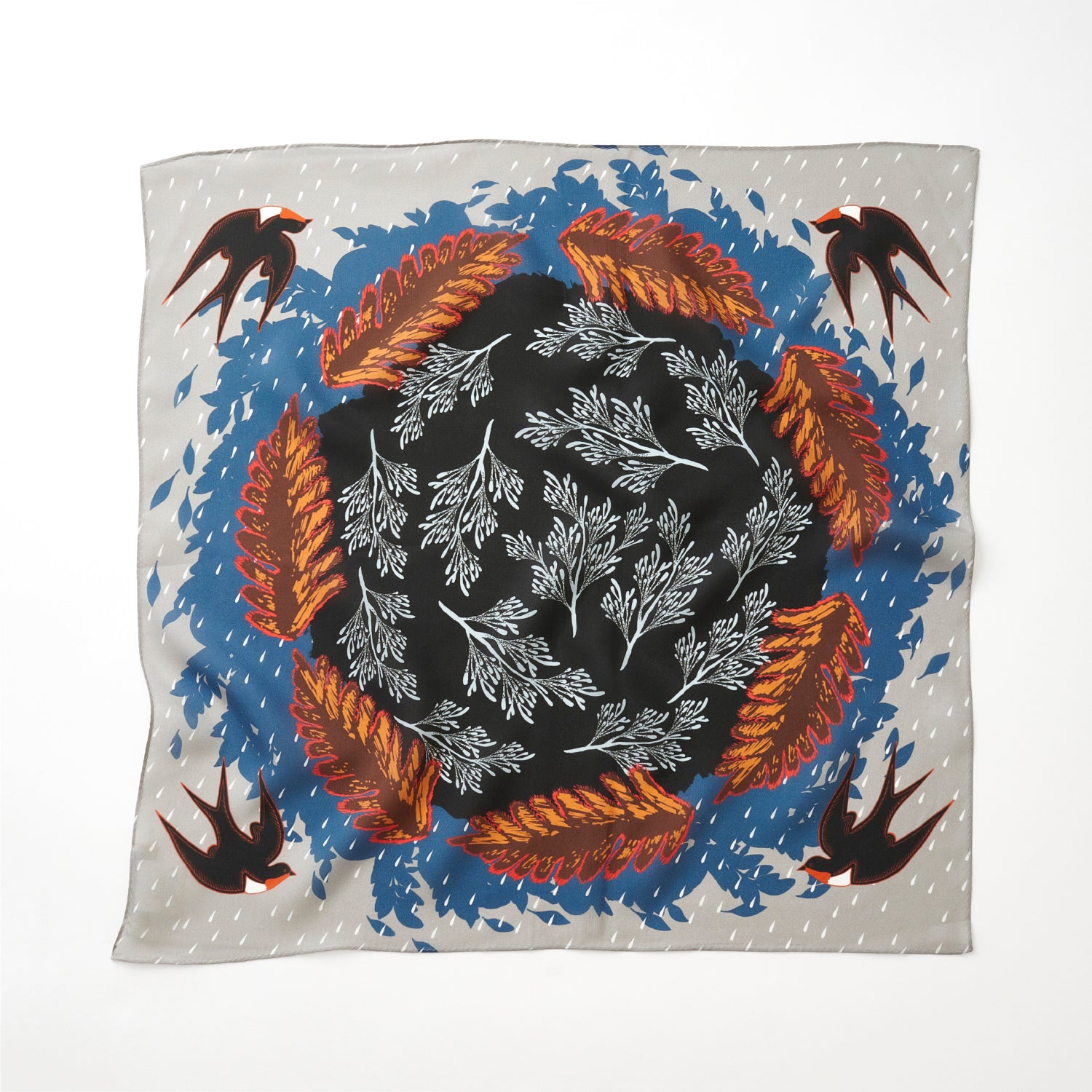Mini-écharpe bleu marine en soie imprimée japonaise 'Polka Dot Queen' avec anneau vague