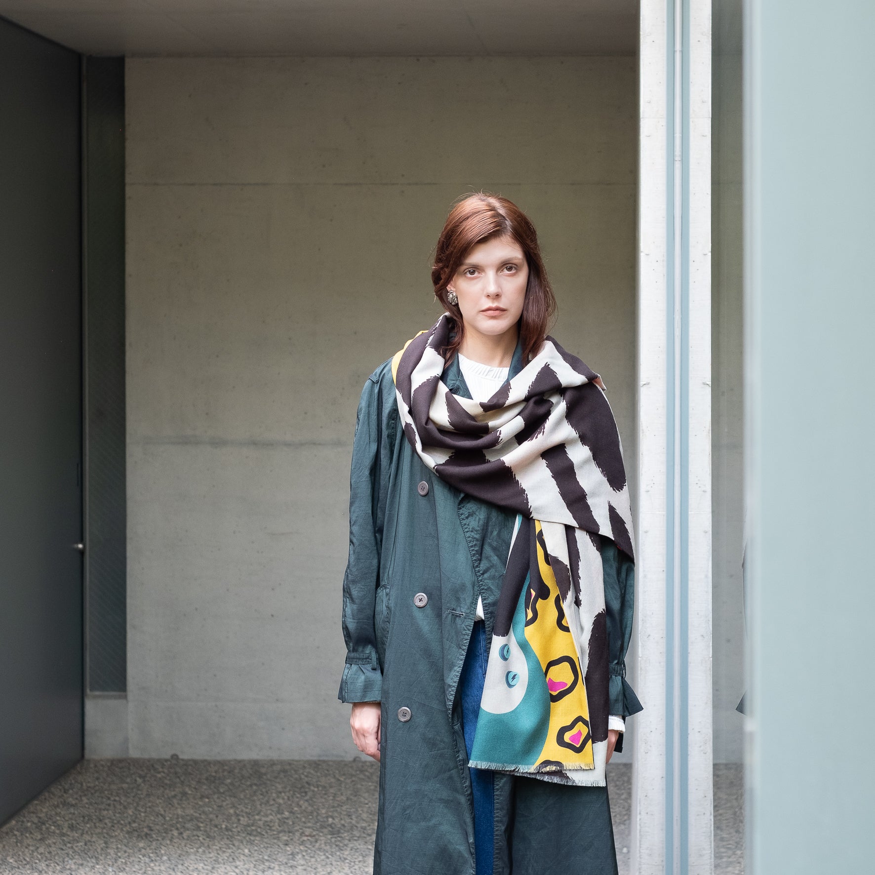Superfine Merino Wool 'Luna's Day Off' 二重仕立てのロングストール。尾州(愛知)でていねいに織られた、柔らかく繊細で温かなメリノウール同士が二重になったロングストール。片面ずつ違うデザインになっています。