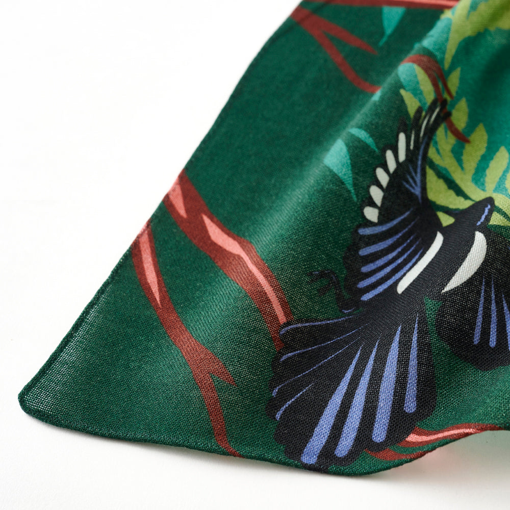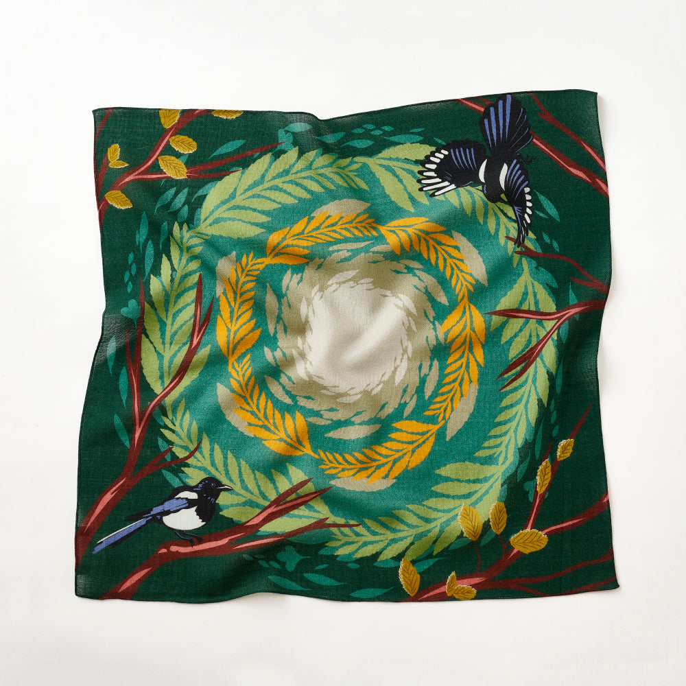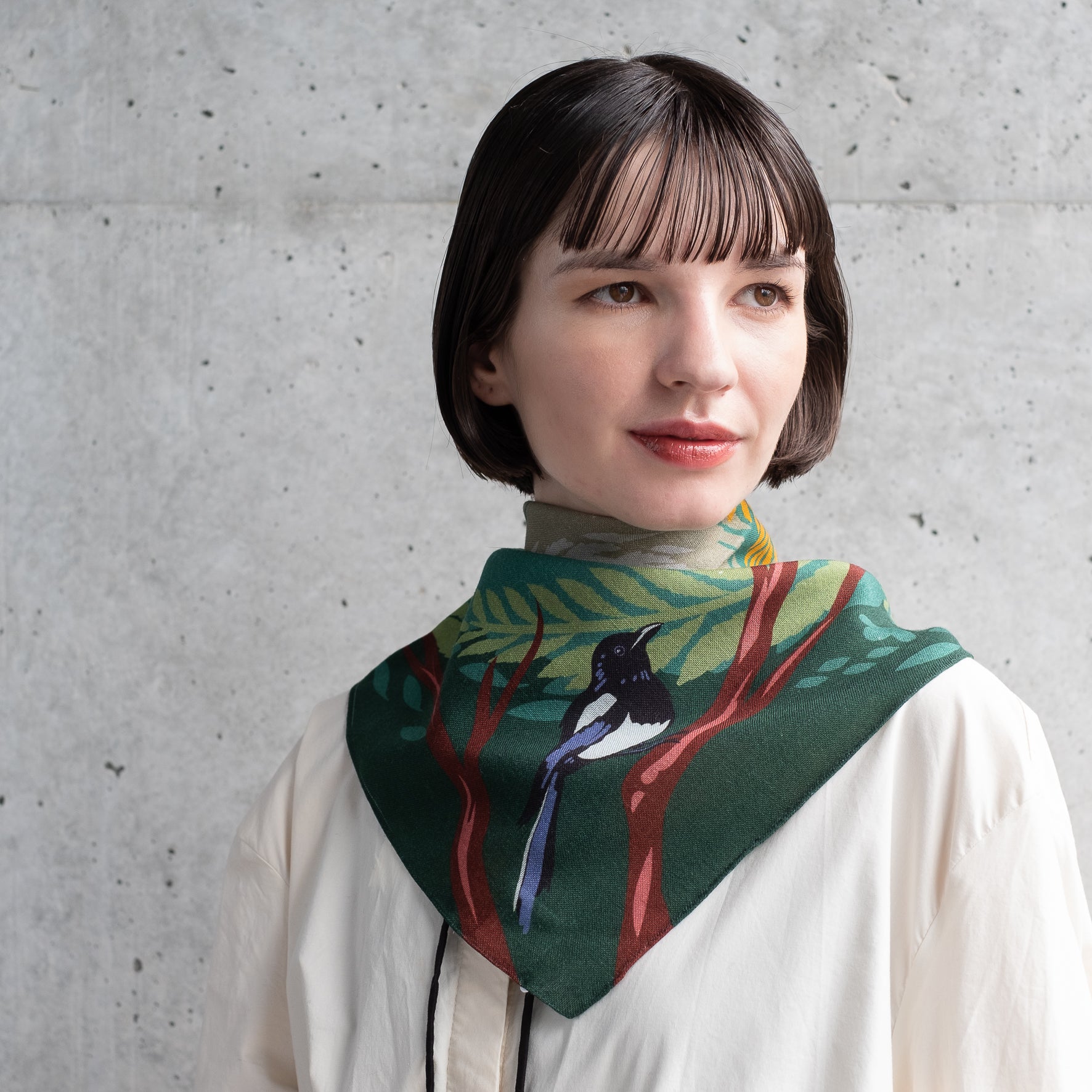 Un mini foulard (foulard) en soie qui peut être agencé avec un anneau de foulard ondulé en laiton.