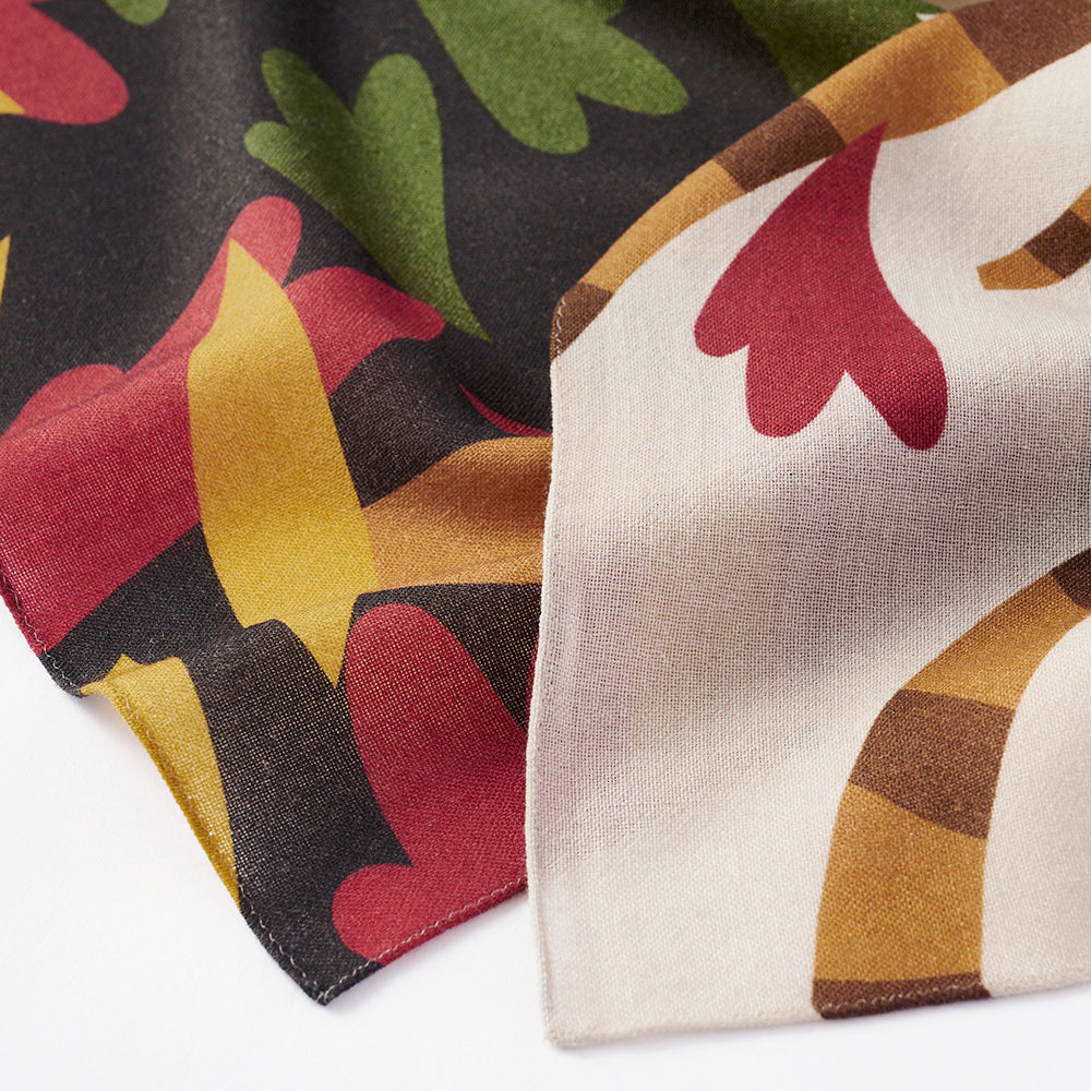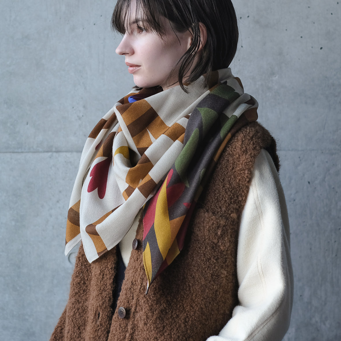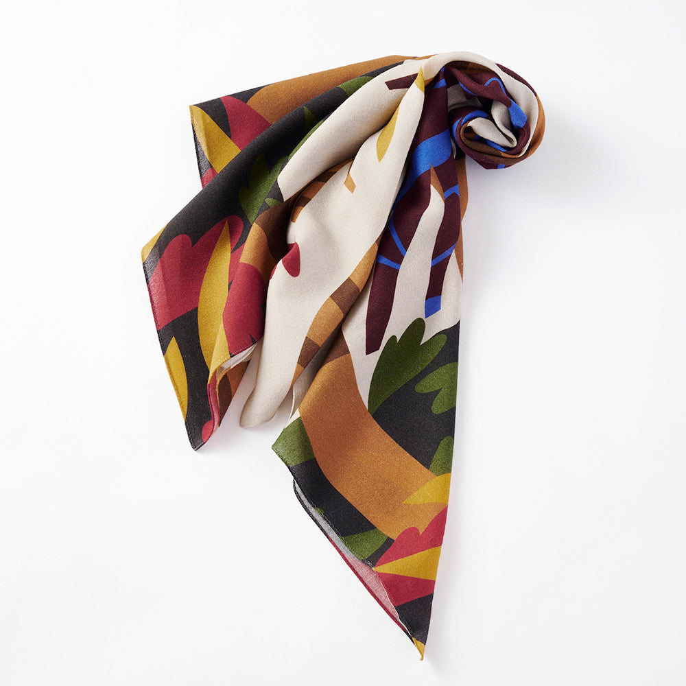 男性女性問わずに使っていただける、大判のスクエアスカーフ。