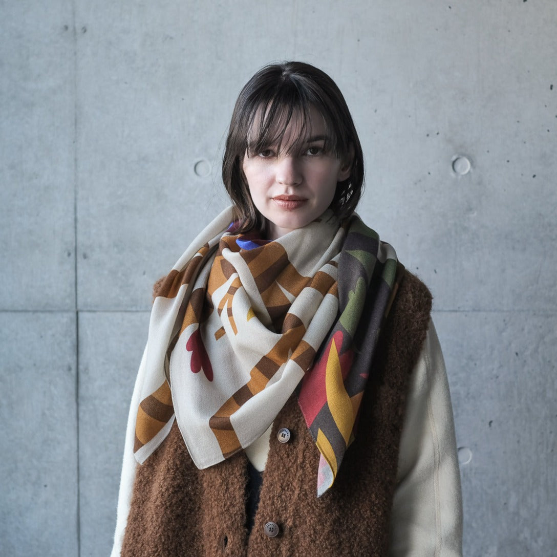 尾州(愛知)でていねいに織られた、柔らかく繊細なメリノウールを使った、大判の正方形スカーフ。