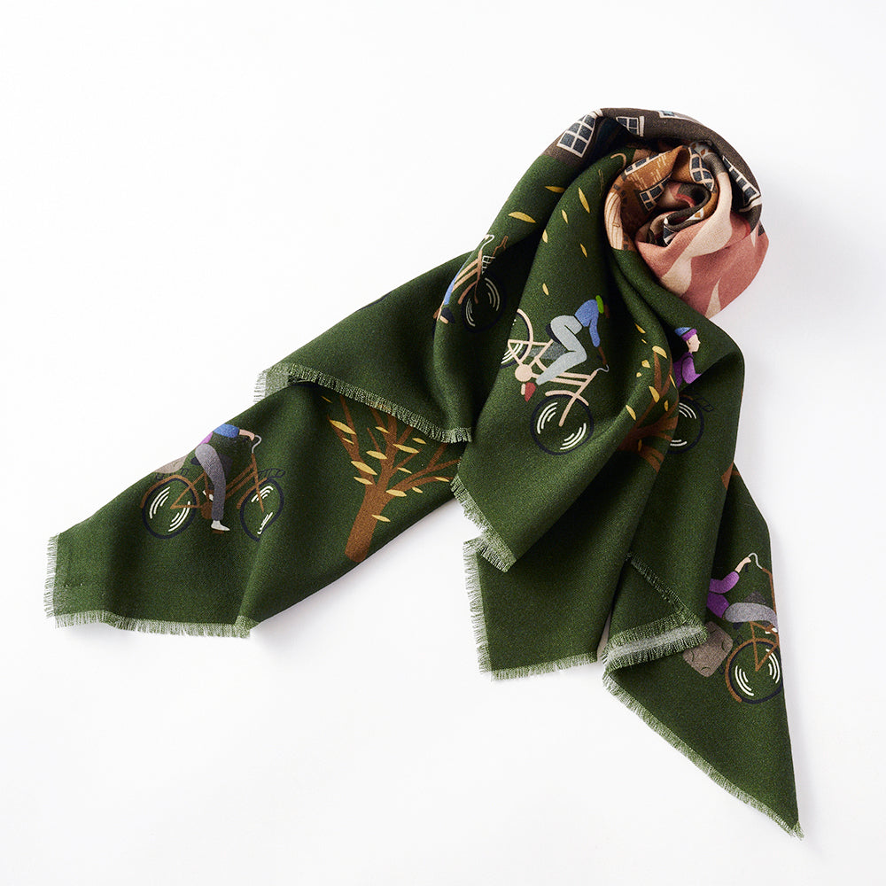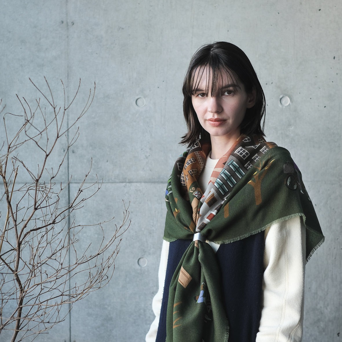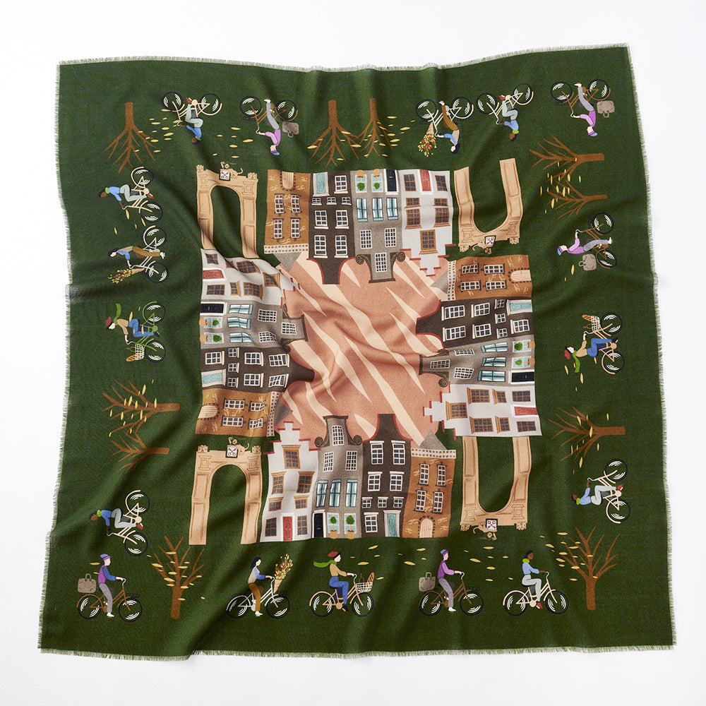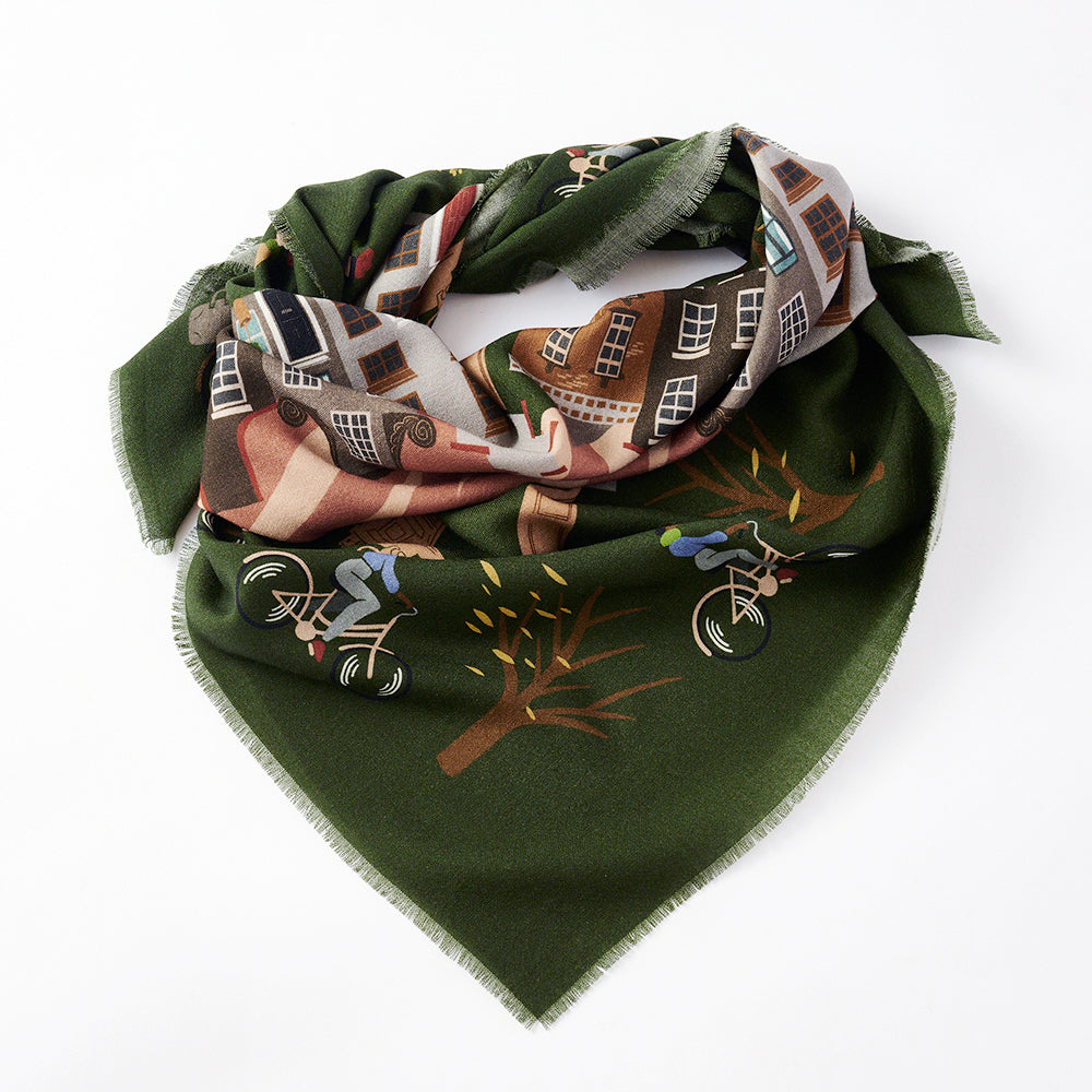 Superfine Merino Wool 'Via Leiden' forest green 正方形スカーフ