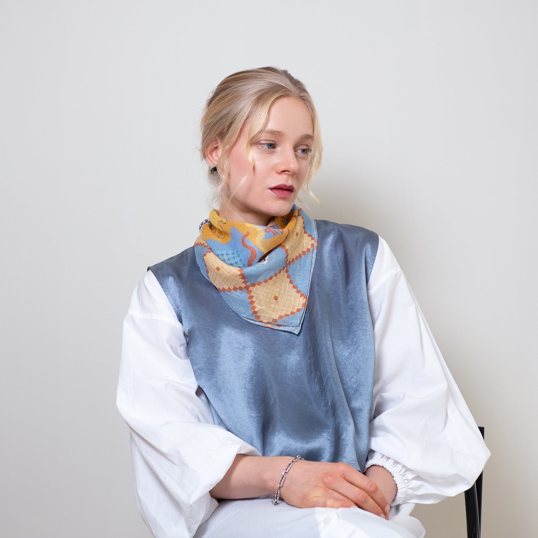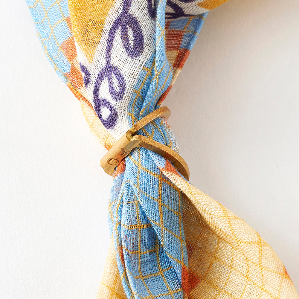 真鍮製サークルリングでアレンジが楽しめる、オーガニックコットンのミニスカーフ(ネッカチーフ)。