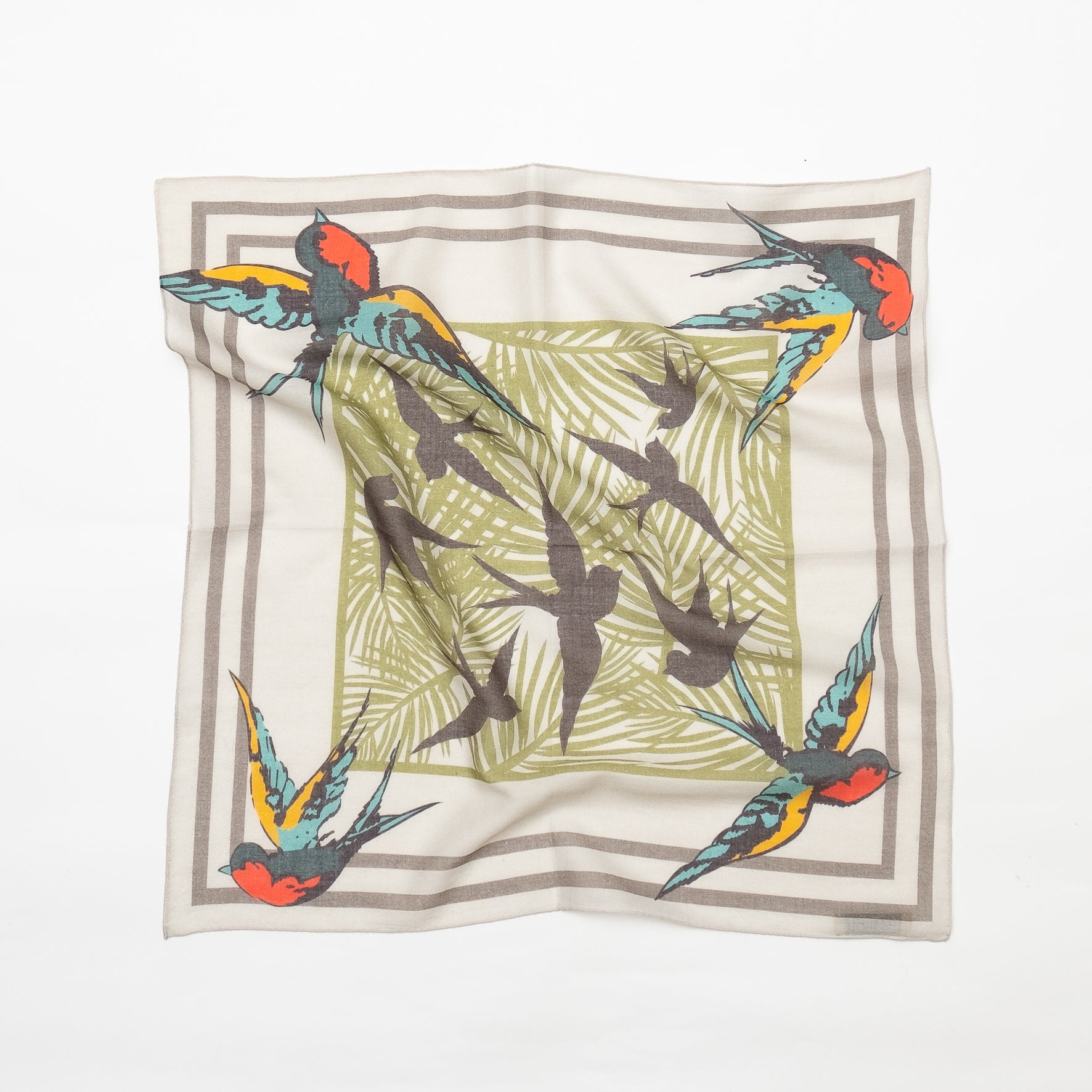 シックで洗練されたツバメモチーフのデザインに、柔らかなベースカラー&アクセントカラーが入っていることで顔まわりも明るくなります。